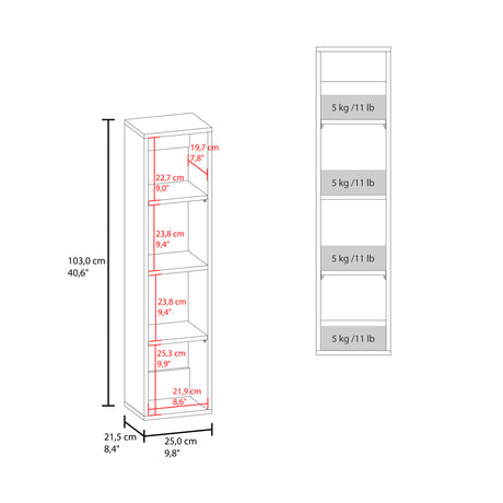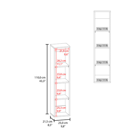 Estantería Home Blanco 45x181cm con Cinco Compartimientos