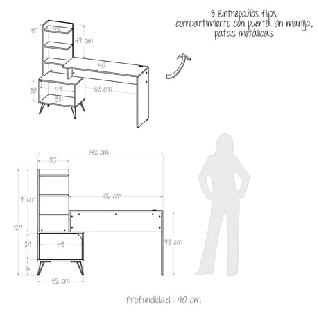 Escritorio Edificie Duna 80 cm con Cajón y Entrepaño