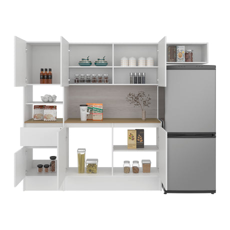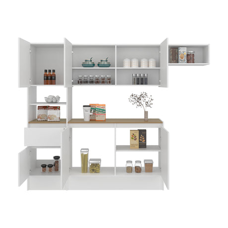 Alacena Fenix Blanco y Rovere 54x160cm sin Cajones y con Cuatro Puertas