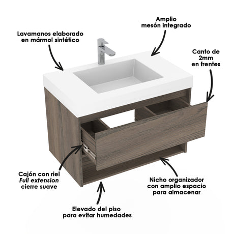Escritorio 80C Wengue 80x73cm Con Un Cajón y con Organizador de Libros