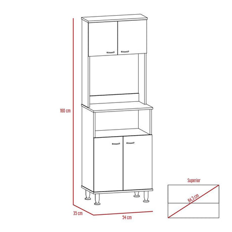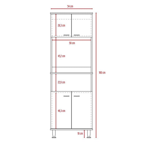 Alacena Fenix Blanco y Rovere 54x160cm sin Cajones y con Cuatro Puertas