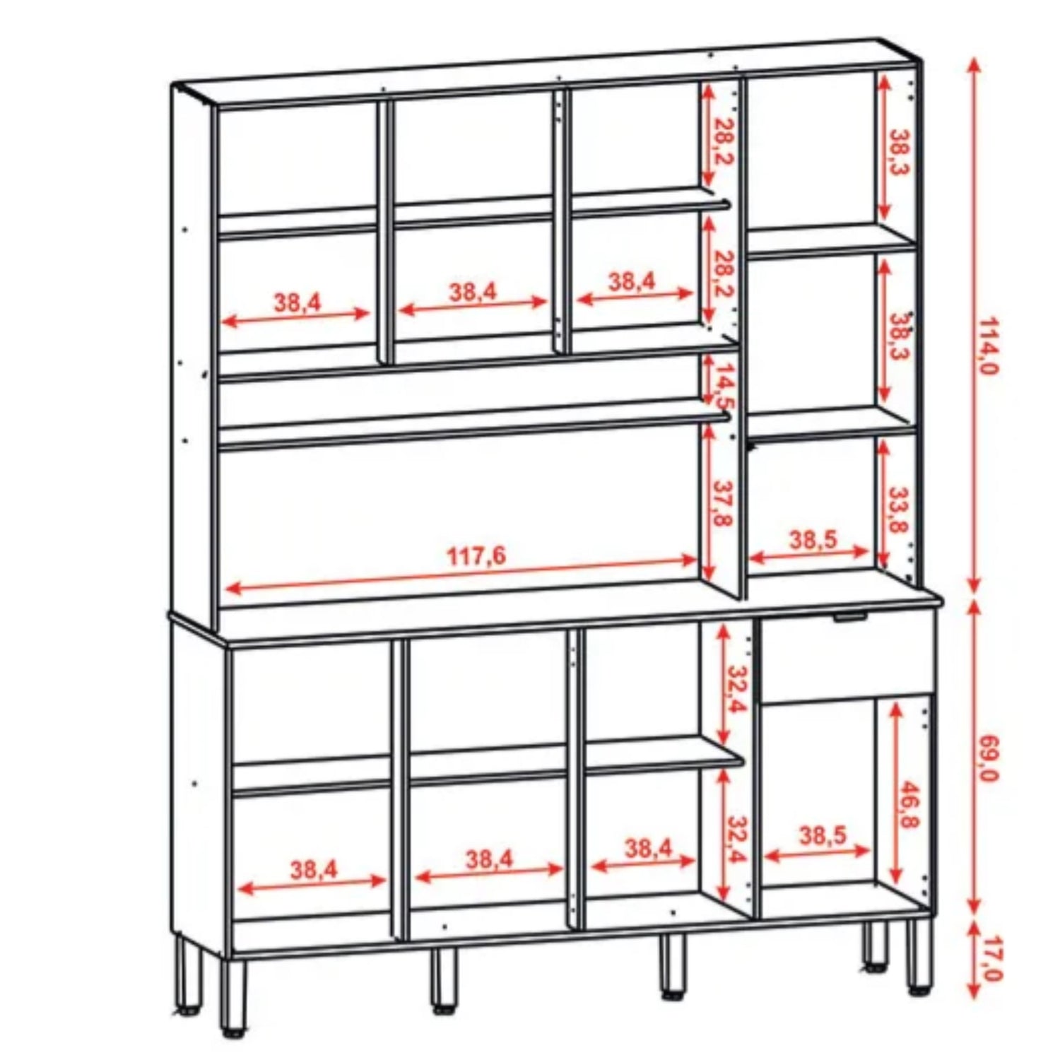 Alacena Slow Castaño y Blanco 200x161cm con Ocho Puertas y con Un Cajón