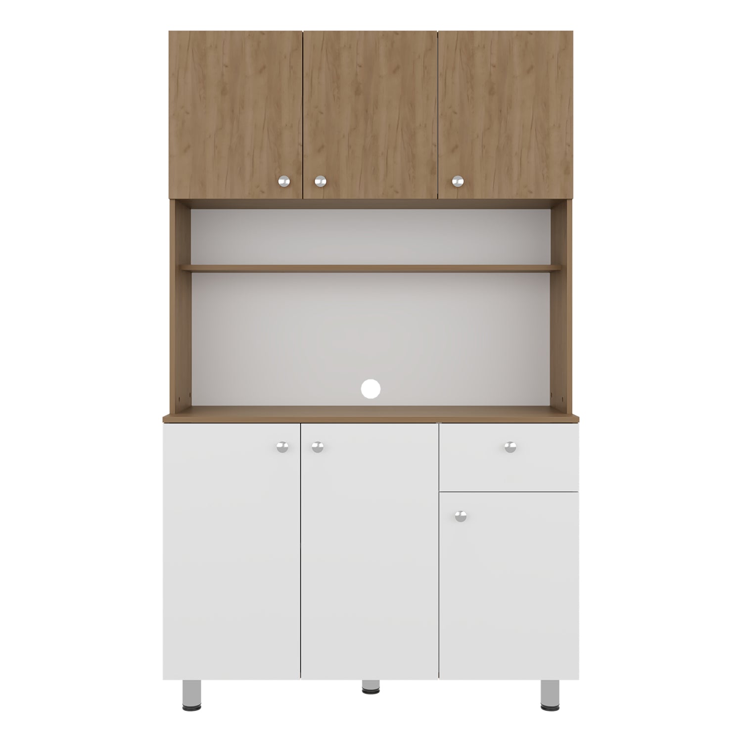 Alacena Wilson Blanco y Fresno 111x185cm Con Espacio para Microondas y con Seis Puertas