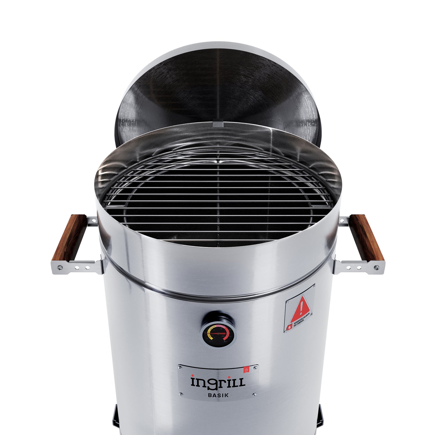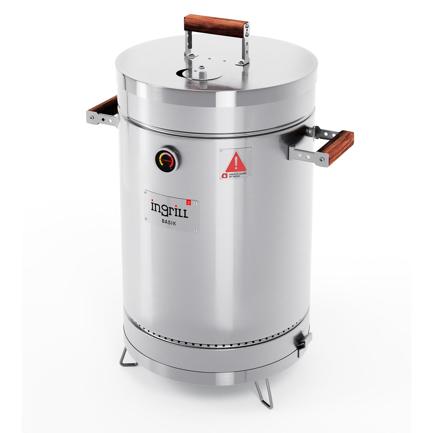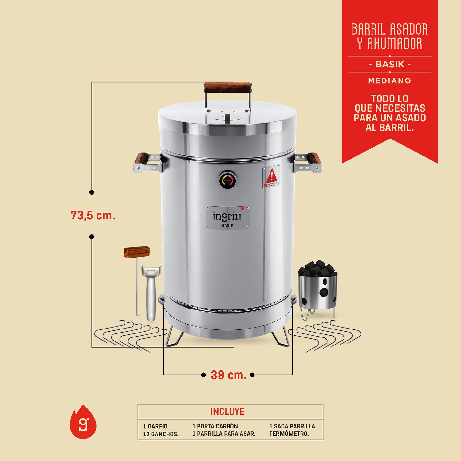 Barril Ahumador Basik Plateado 39x73.5cm Para 25 Libras con Termómetro y Control de Ventilación