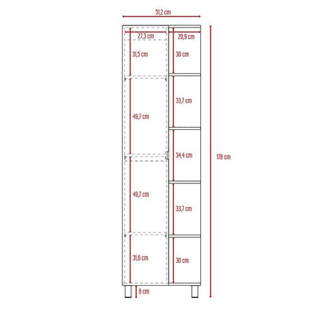 Optimizador de Baño Bath Rovere y Blanco 51.2x178.1cm sin Cajones y con Cuatro Entrepaños