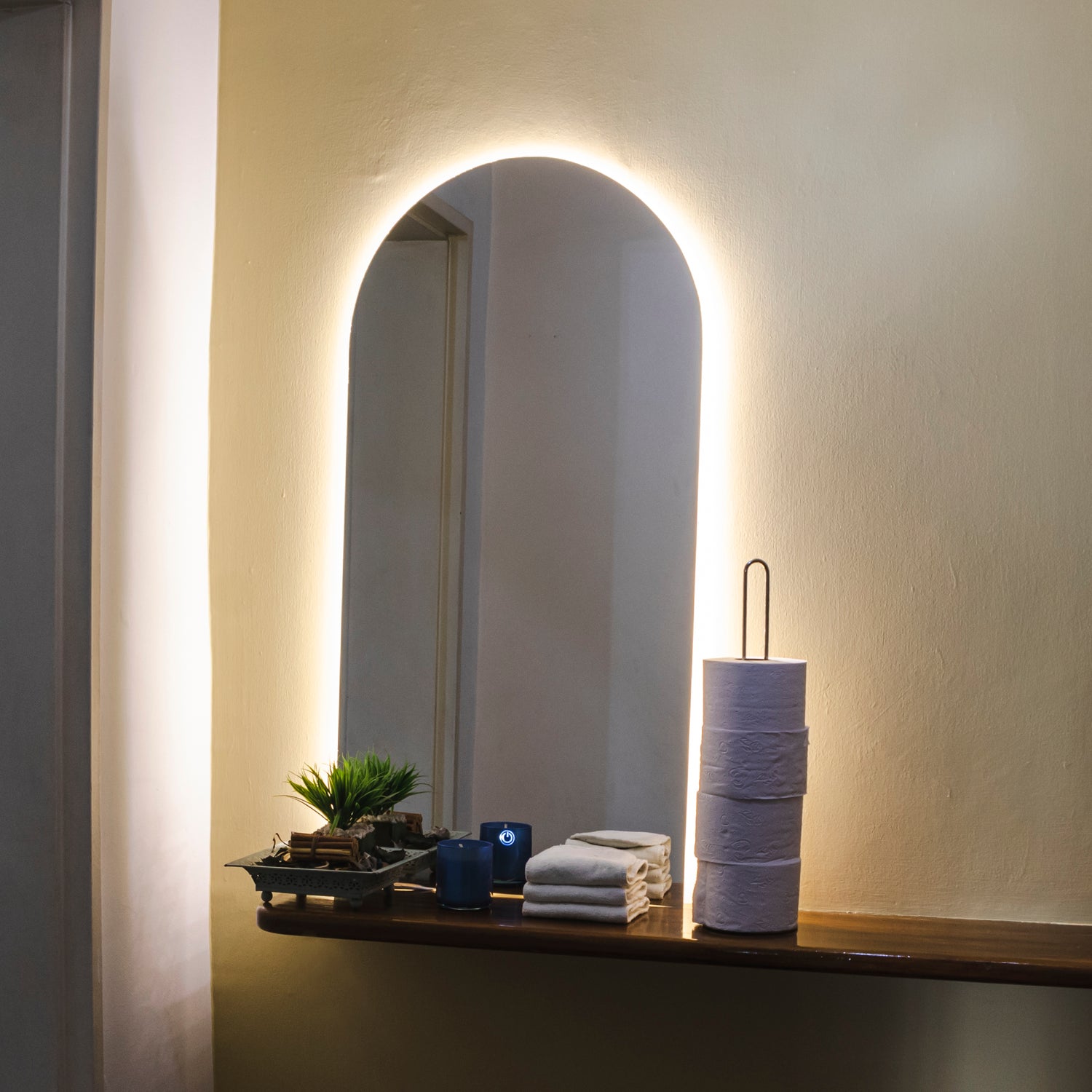 Espejo de Baño Arco Superior Atenas 50x100cm Flotado Sin Marco y con Iluminación LED