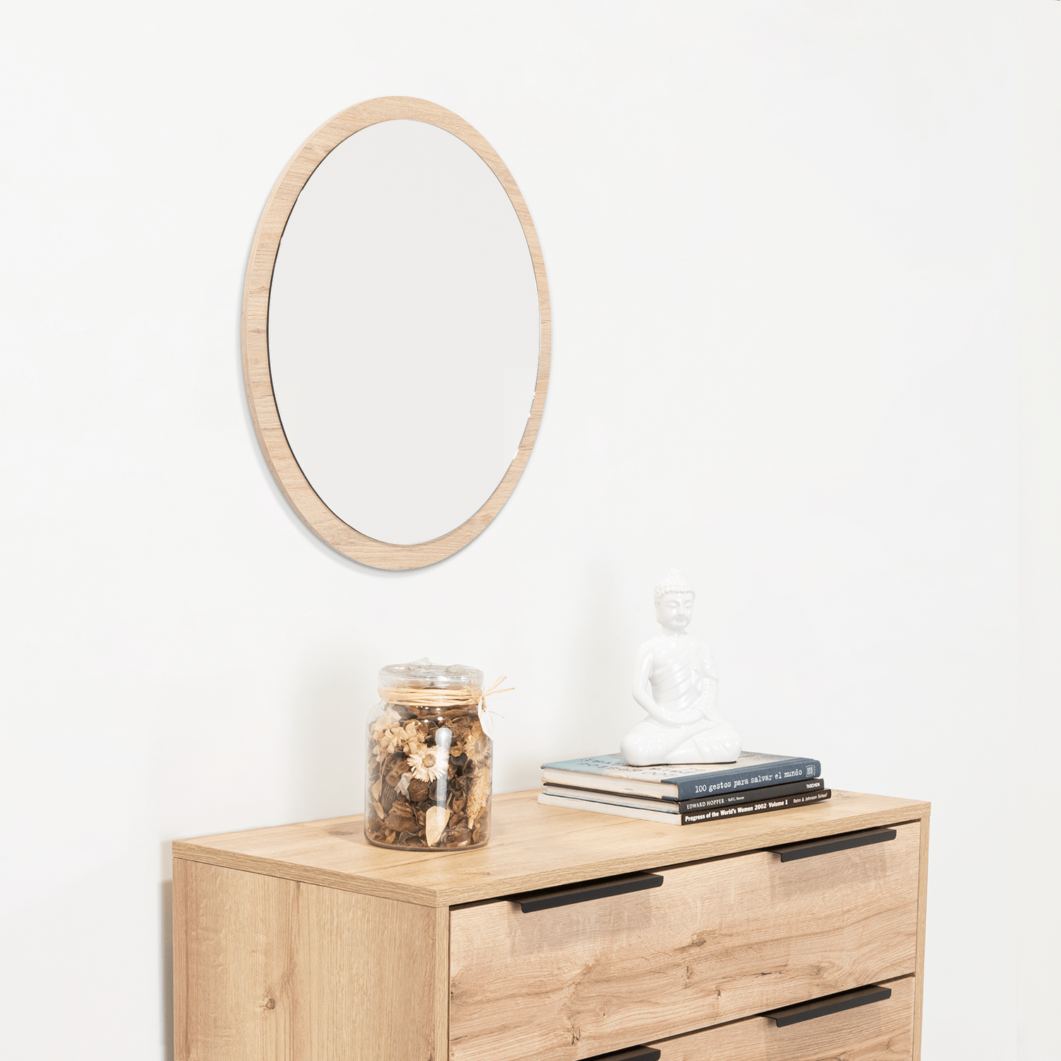 Espejo de Baño Ary 60 Gris 60x60cm Redondo con Marco En Madera