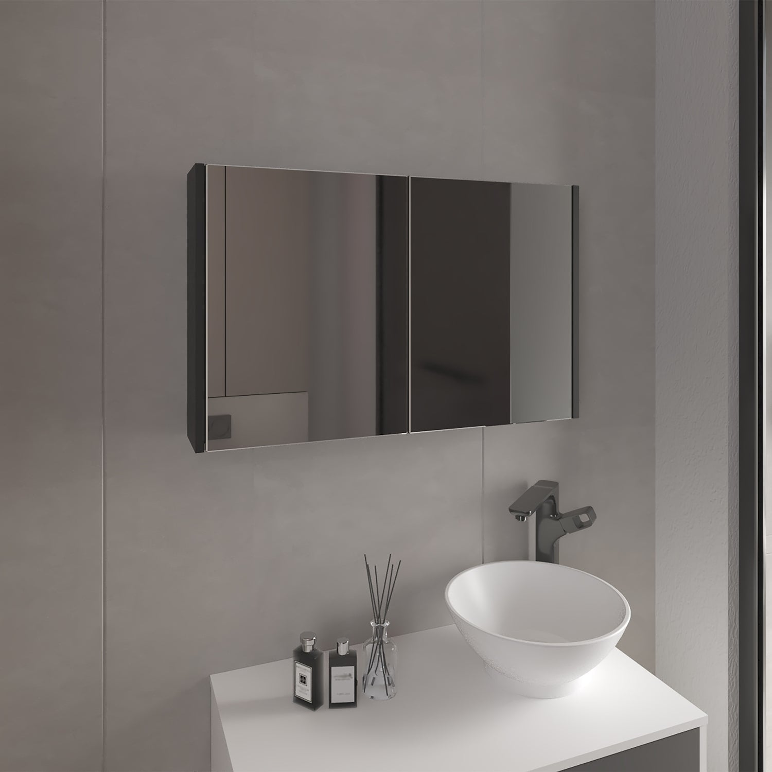Gabinete de Baño Botiquin 80 Wengue 80x50cm Rectangular con Espejo y Un Entrepaño