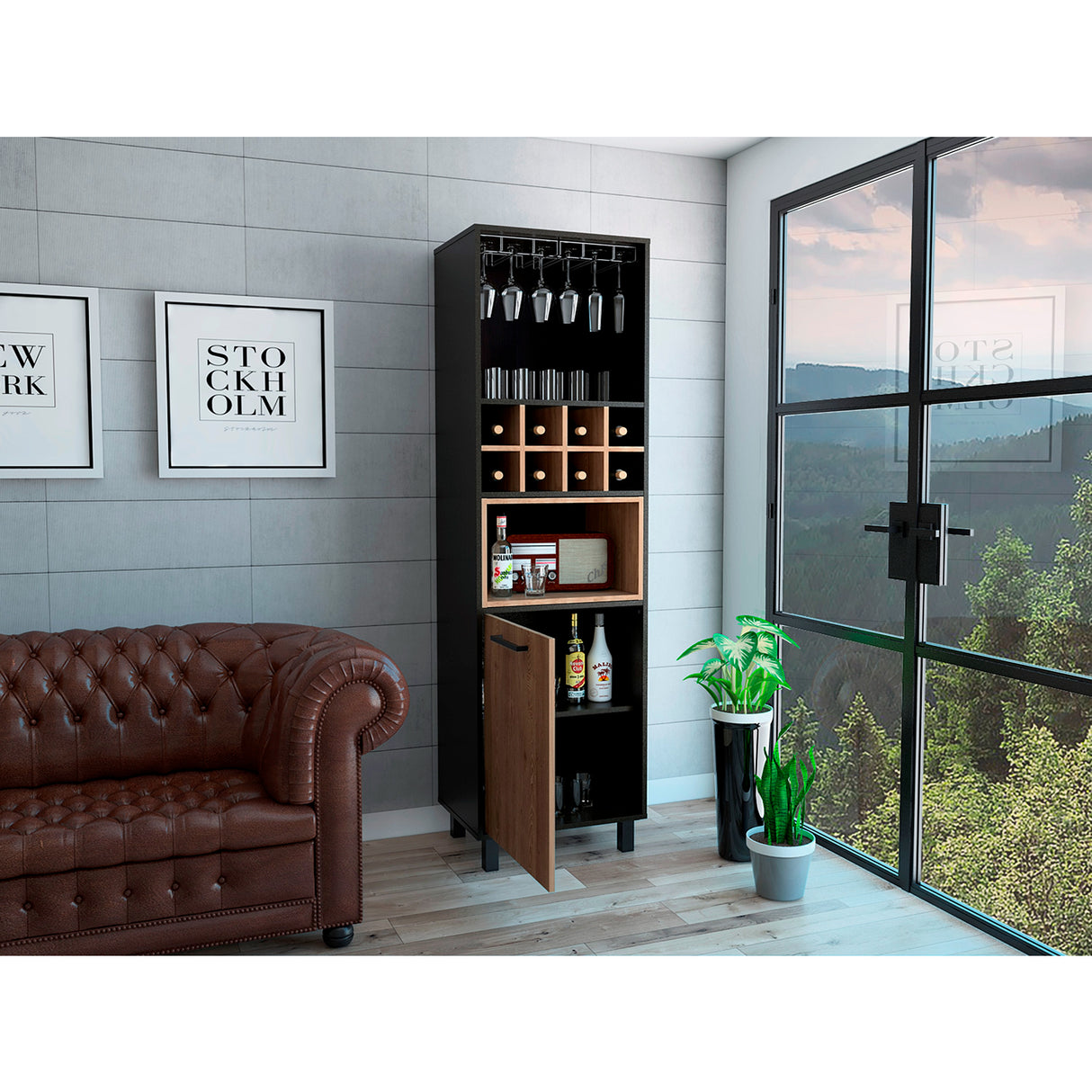 Transforma tu espacio de entretenimiento con nuestro bar Kaia Wengue. Con un diseño moderno y elegante, este bar es perfecto para almacenar tus copas de vino y organizar tus licores favoritos. Su puerta batiente te brinda comodidad y su amplio espacio superior es ideal para colocar objetos decorativos. Fácil de armar con instrucciones incluidas, está hecho con materiales resistentes y duraderos. No pierdas la oportunidad de tener un bar funcional y estiloso en tu hogar. ¡Hazte con el tuyo ahora!