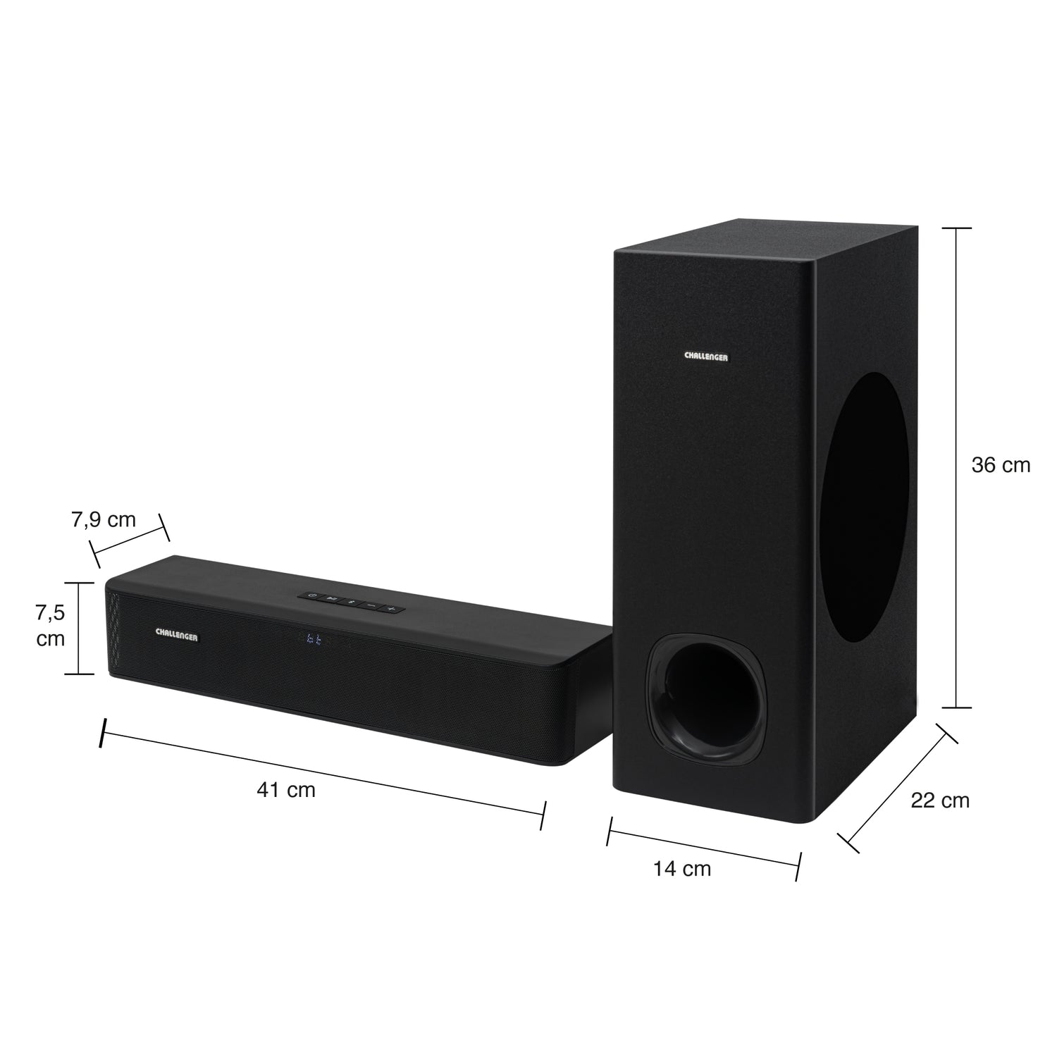 Barra de Sonido con Subwoofer Challenger Negro 55x43.9cm con Bluetooth y Control Remoto