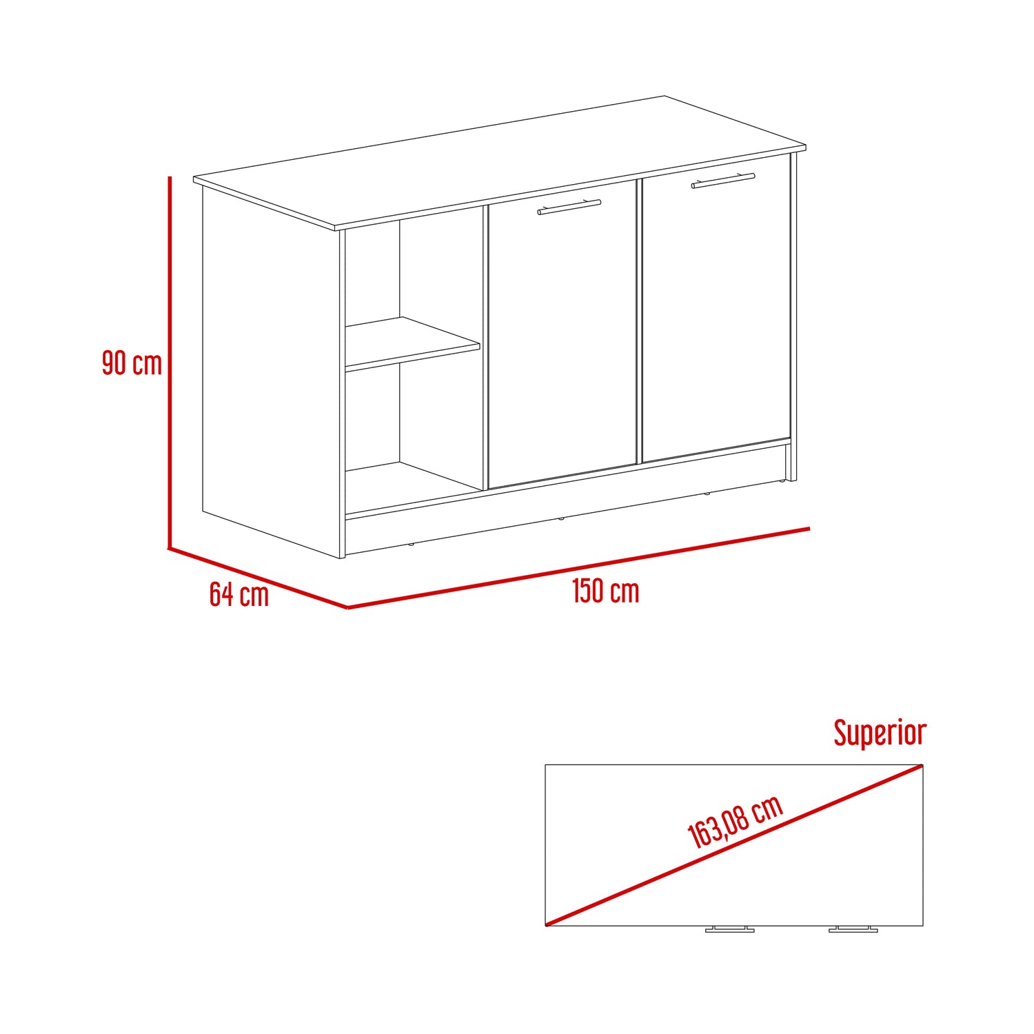 Isla de Cocina Juniper 150x90cm Onix Moderna con Entrepaños
