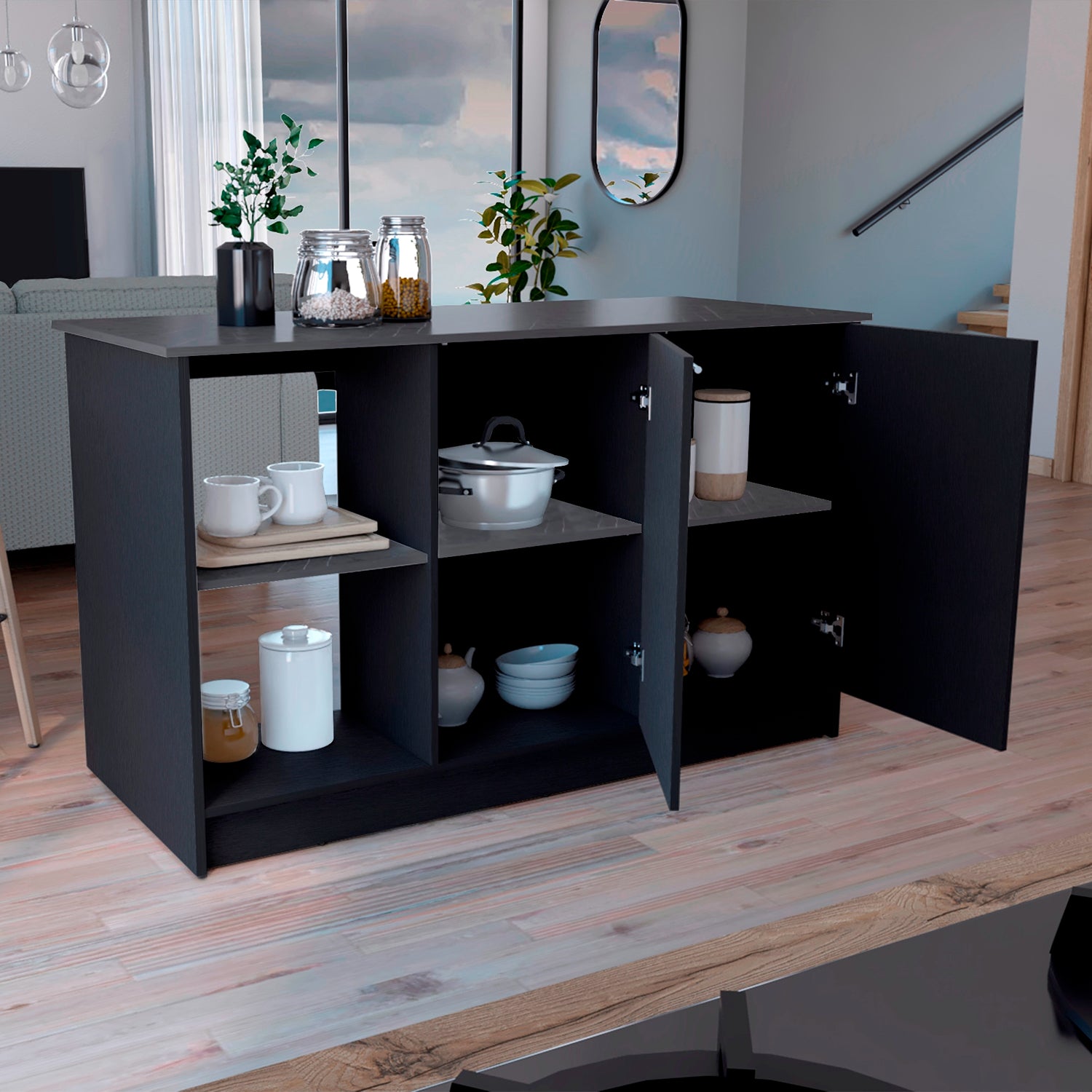 Isla de Cocina Juniper 150x90cm Wengue con 3 Entrepaños