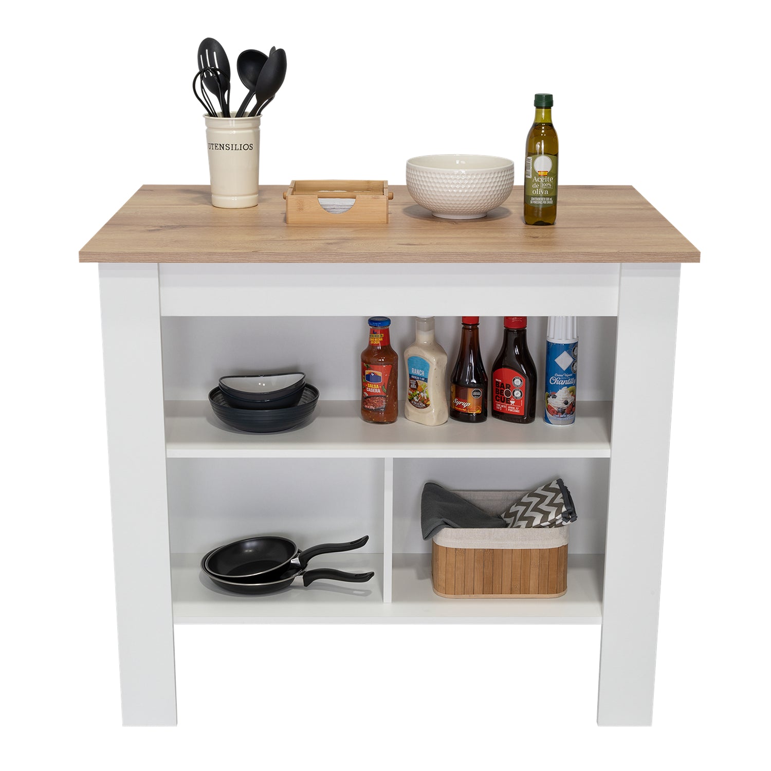 Mesa Auxiliar de Cocina Kitchen Duna y Blanco 103x90cm con Dos Entrepaños y con Tres Comportamientos