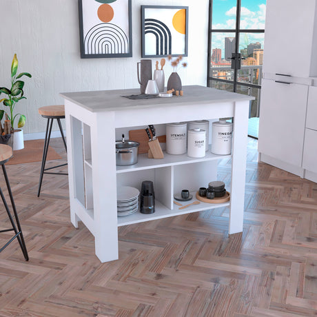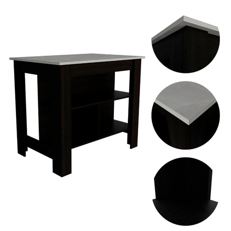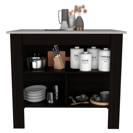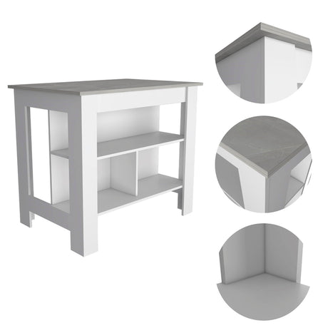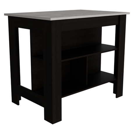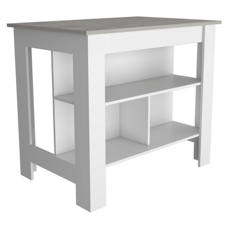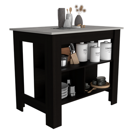 Isla de Cocina Juniper Onix 150x90cm con Tres Entrepaños y Seis Compartimientos