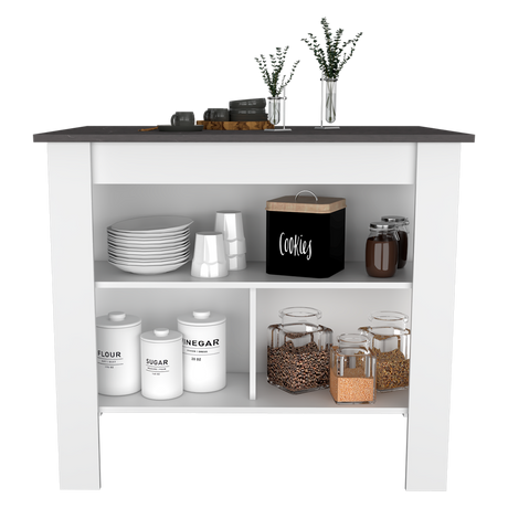 Isla de Cocina Atenea Blanco 103x90cm con Compartimiento y Entrepaños