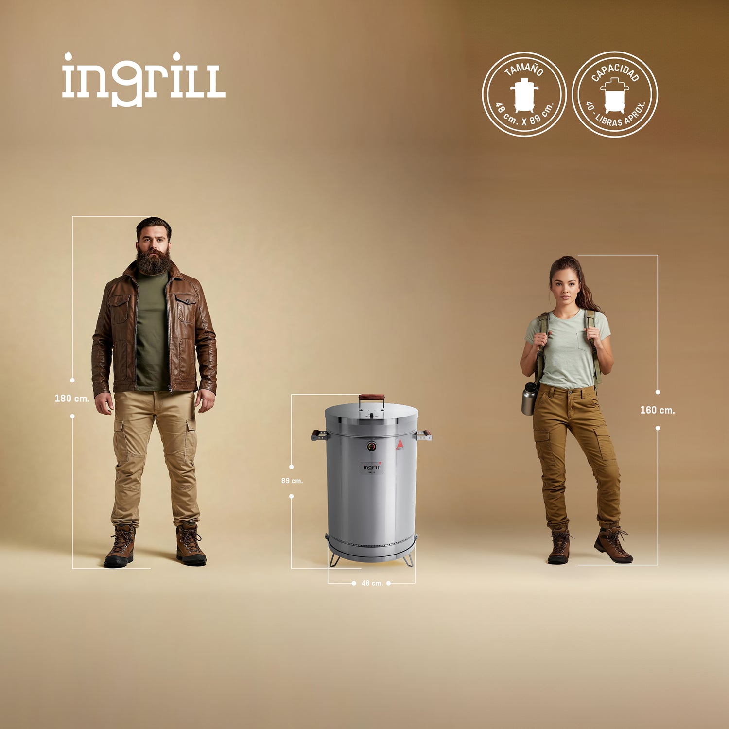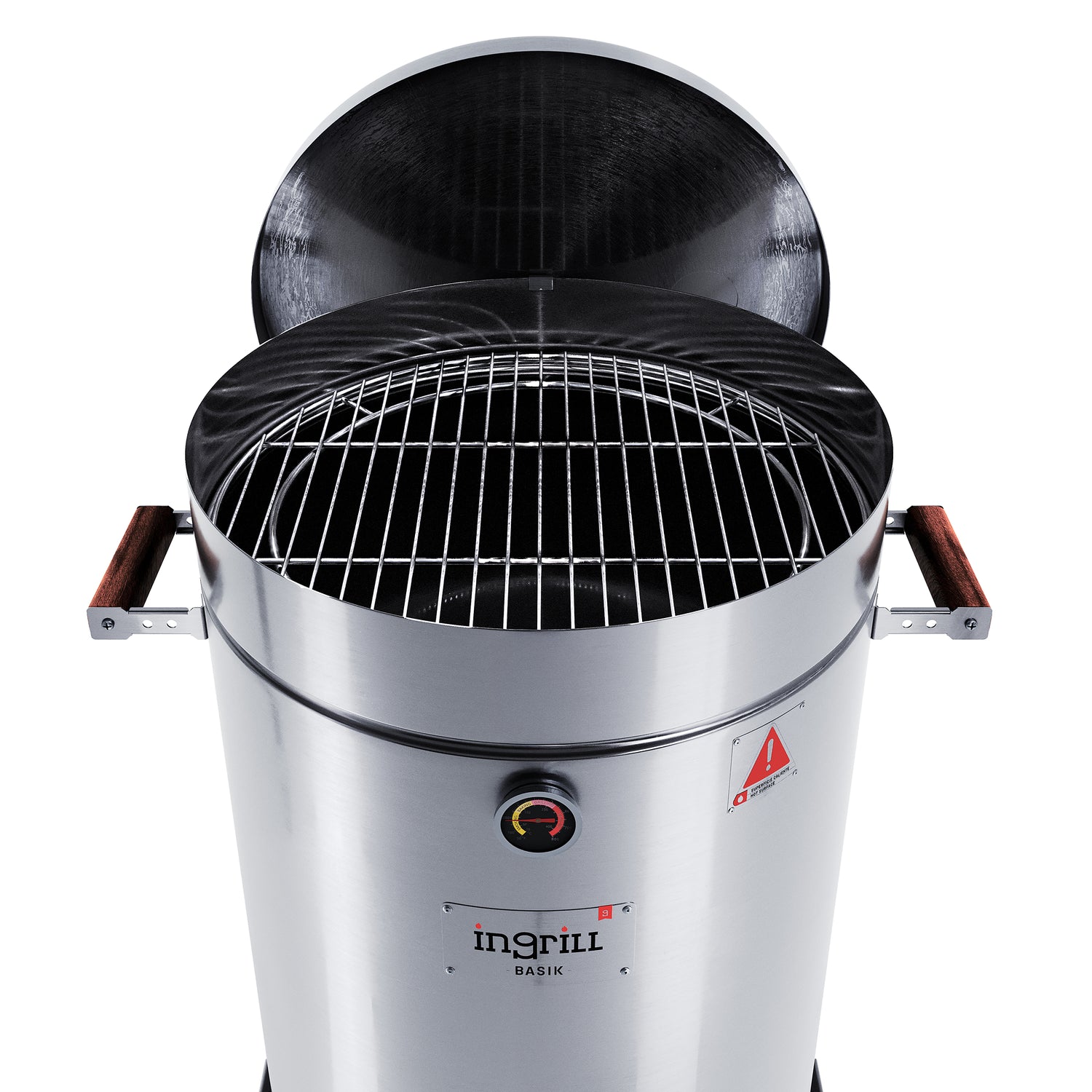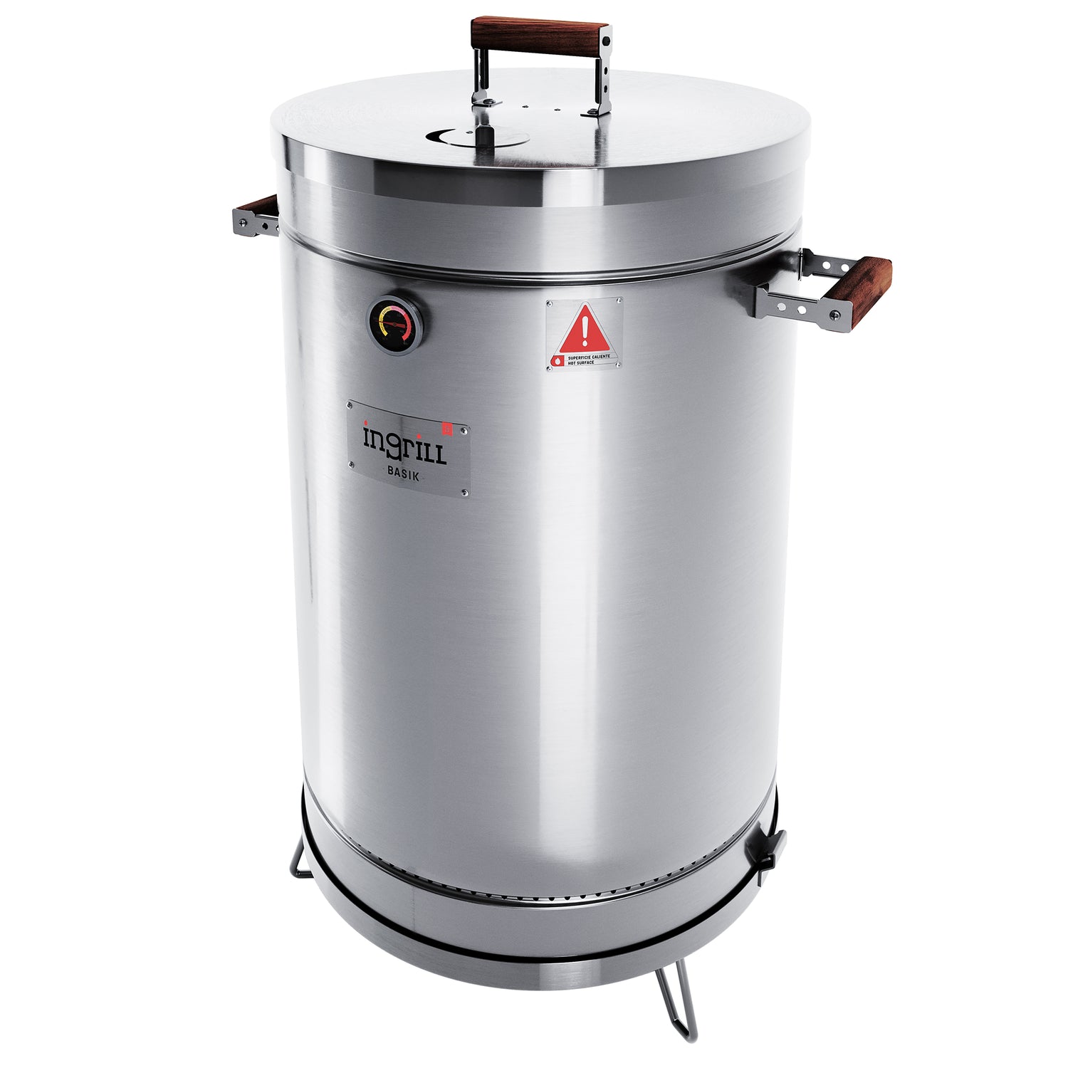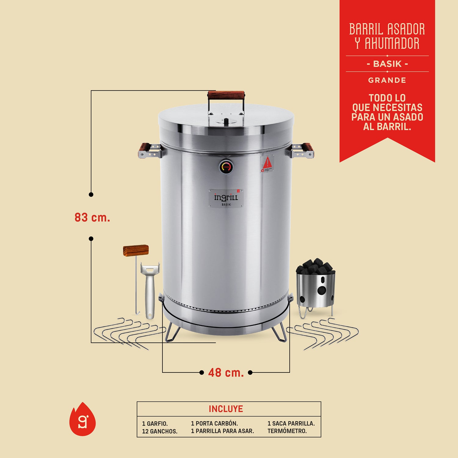 Barril Ahumador Basik Plateado 48x83cm Para 40 Libras con Termómetro y Control de Ventilación