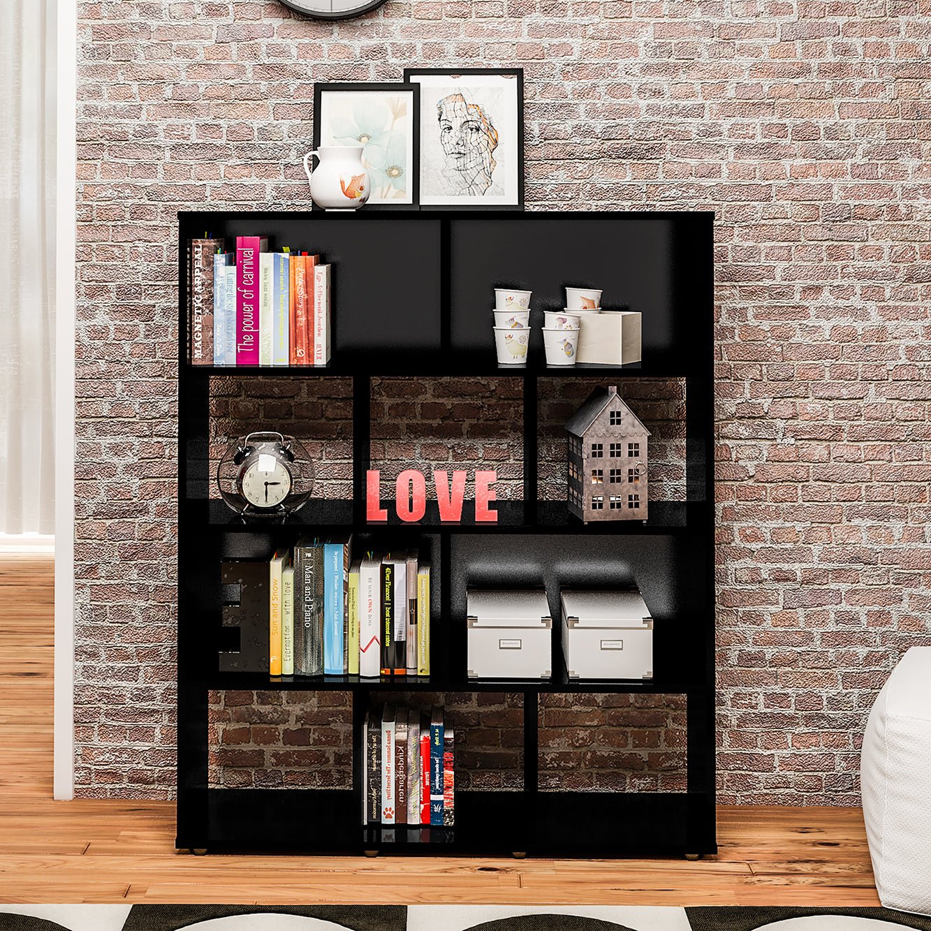 • Gran espacio interior para acomodar libros, objetos de decoración y más.