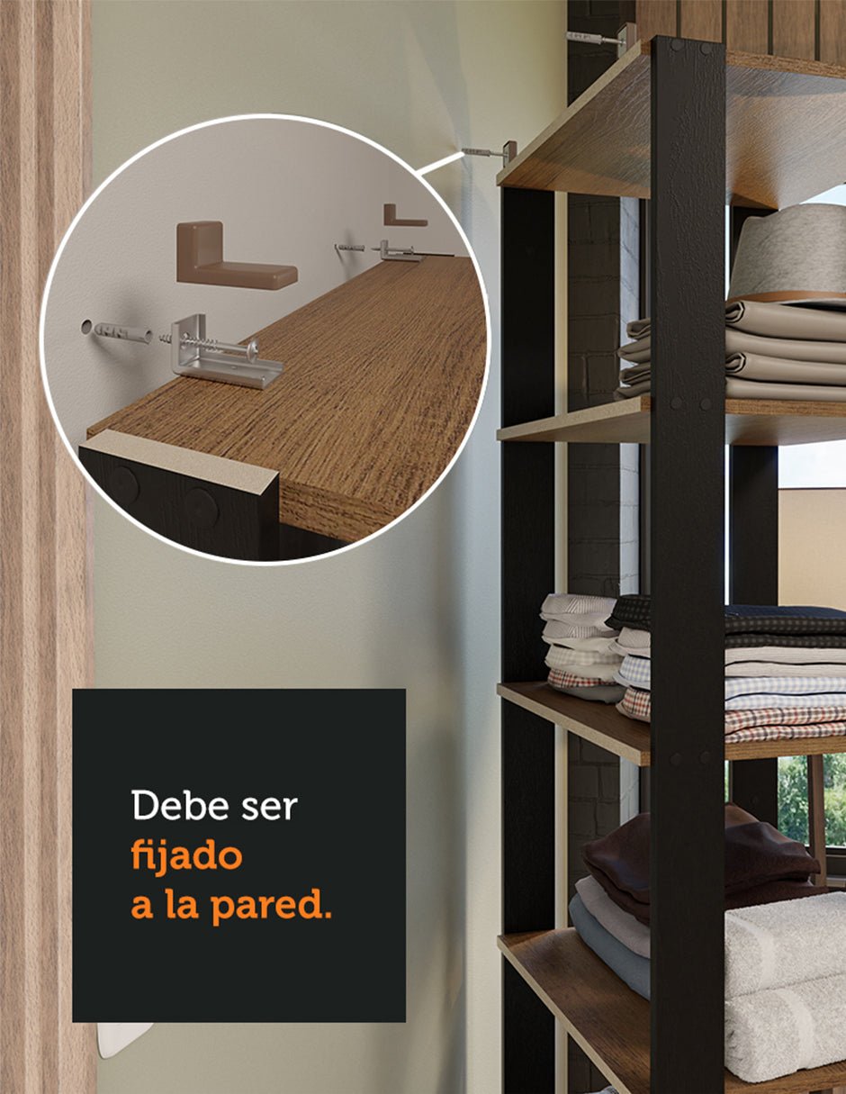 Limpiarla regularmente con un paño suave y seco o ligeramente húmedo, evitando el exceso de agua para prevenir que el material se hinche o se deforme. Usa productos de limpieza suaves, sin químicos abrasivos que puedan dañar el acabado. Evita colocar objetos muy pesados en los estantes para prevenir deformaciones o daños estructurales, distribuyendo el peso de manera uniforme. Además, es importante mantener la estantería en un lugar seco y ventilado, lejos de la luz solar directa o de fuentes de calor, ya que estos factores pueden causar decoloración o debilitamiento del material con el tiempo.