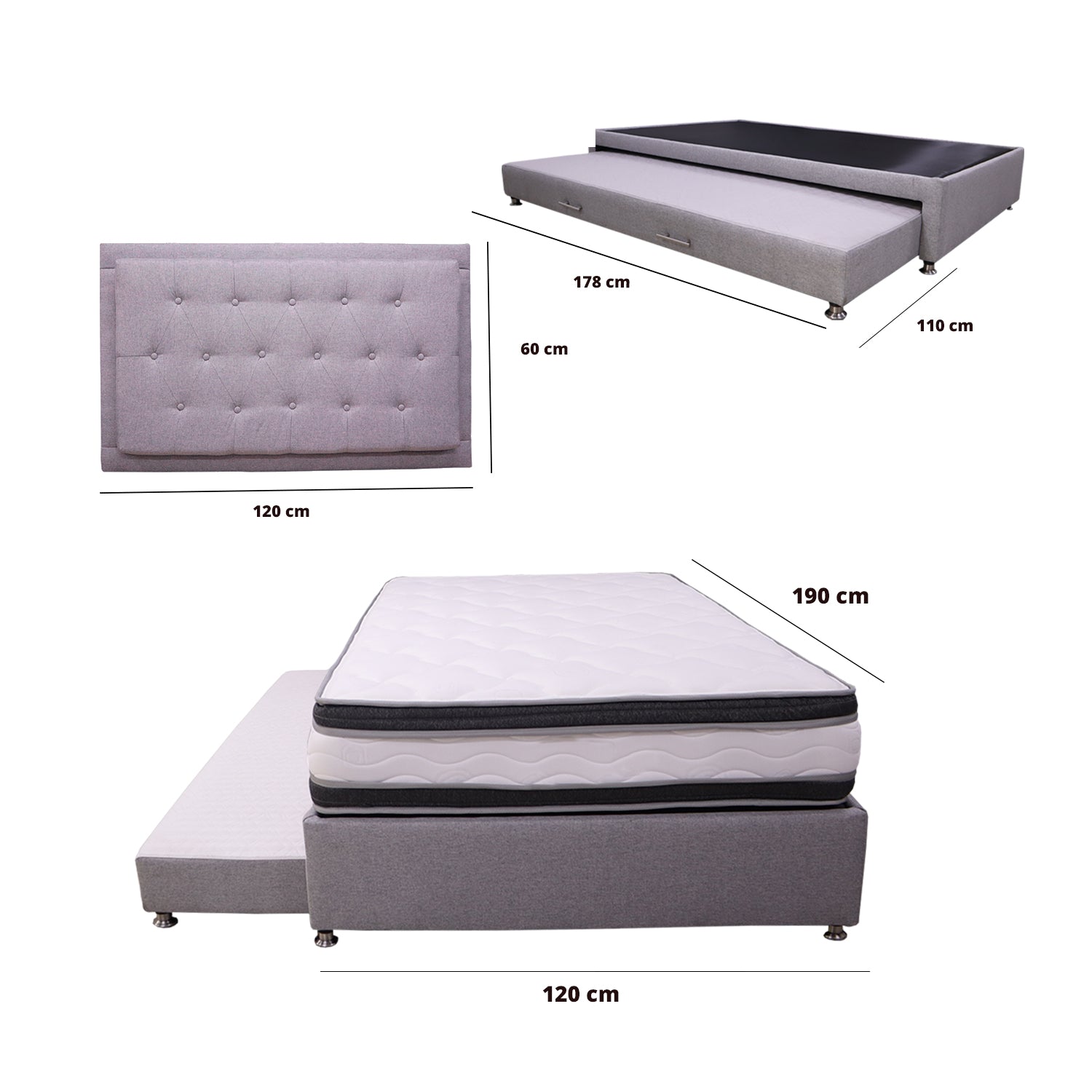 Cama Tarima Nido con Colchón Blaser Gris 120 X 190 Cm Semidoble + Almohada + Cabecero