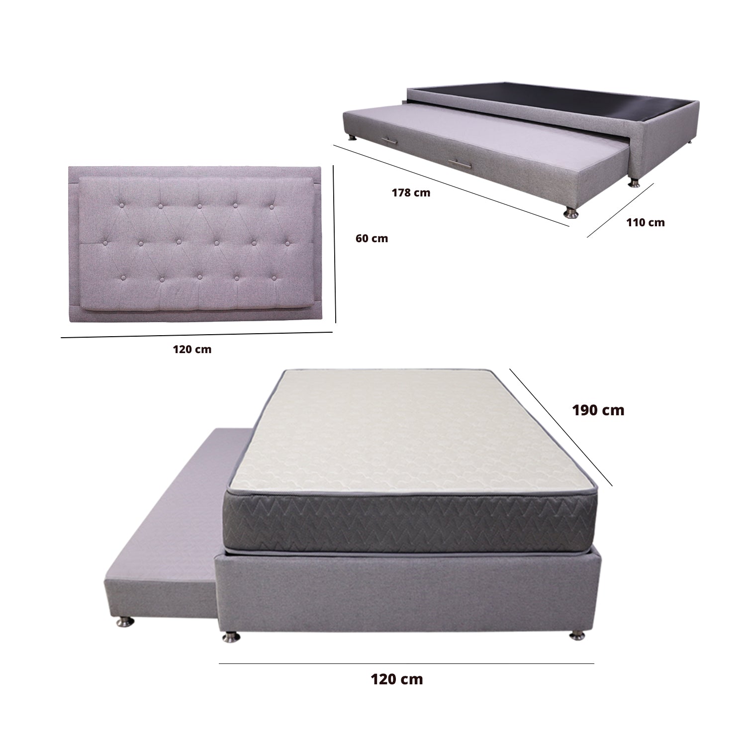 | Tamaño cama auxiliar | SEMIDOBLE 120 X 180 CM |