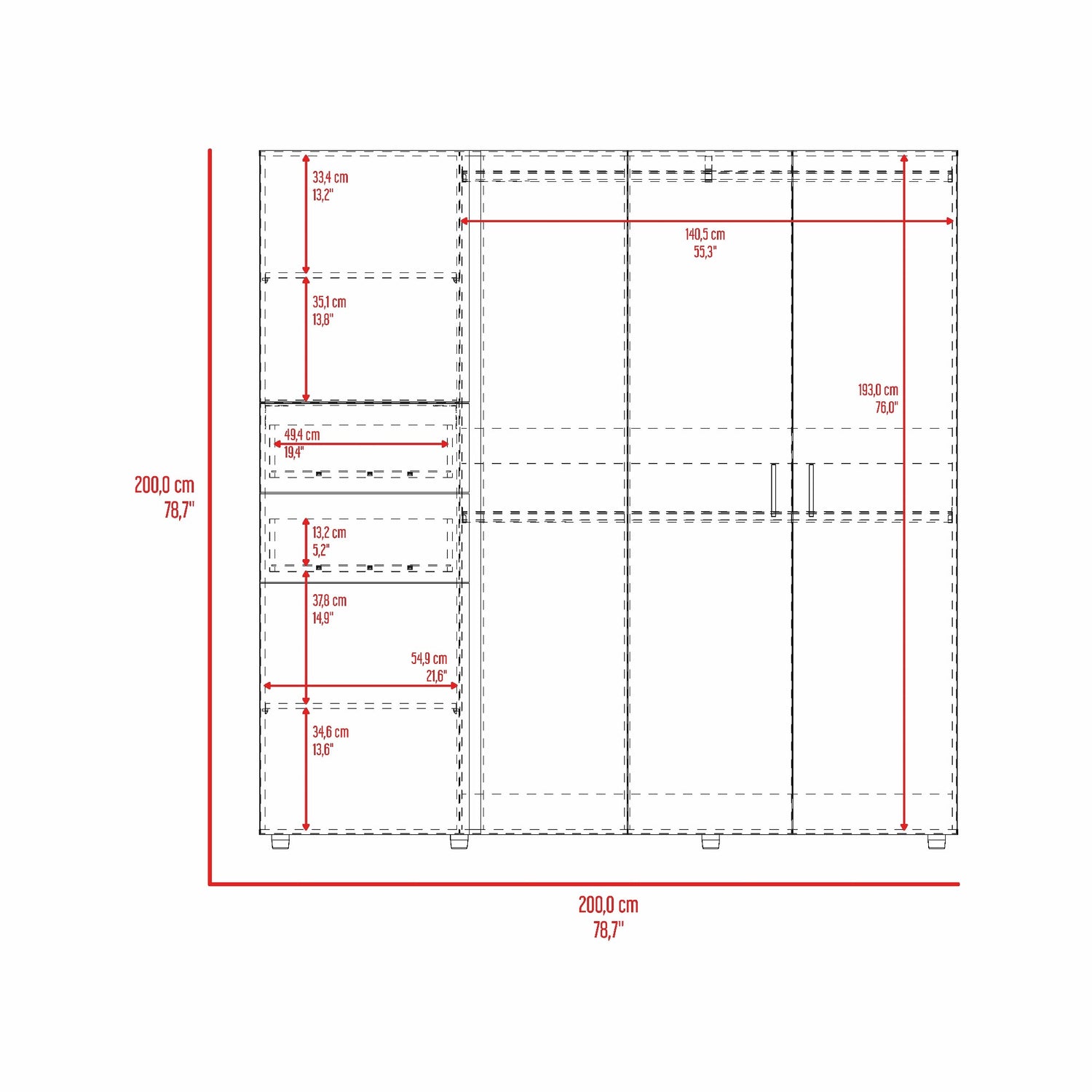 Closet Antalya Bardolino y Blanco 200.1x200cm con Diez Compartimientos y con Cinco Puertas