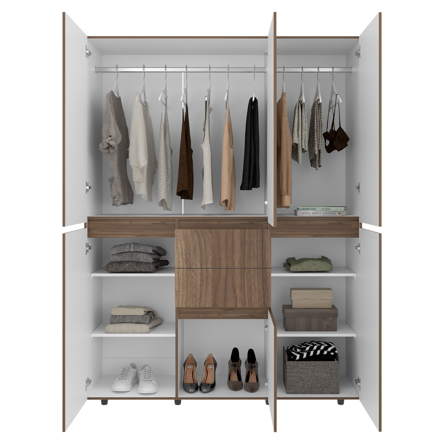 Closet Bea Gales y Blanco 150x200cm con Dos Cajones y con Seis Puertas