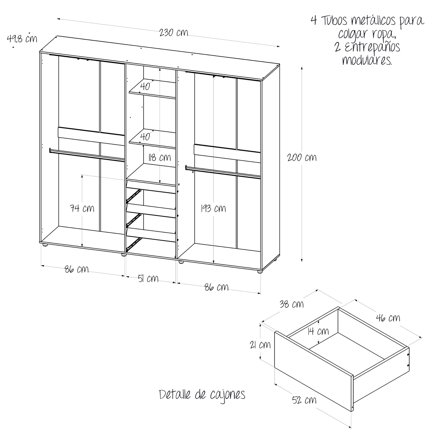 • Ancho: 230 cm