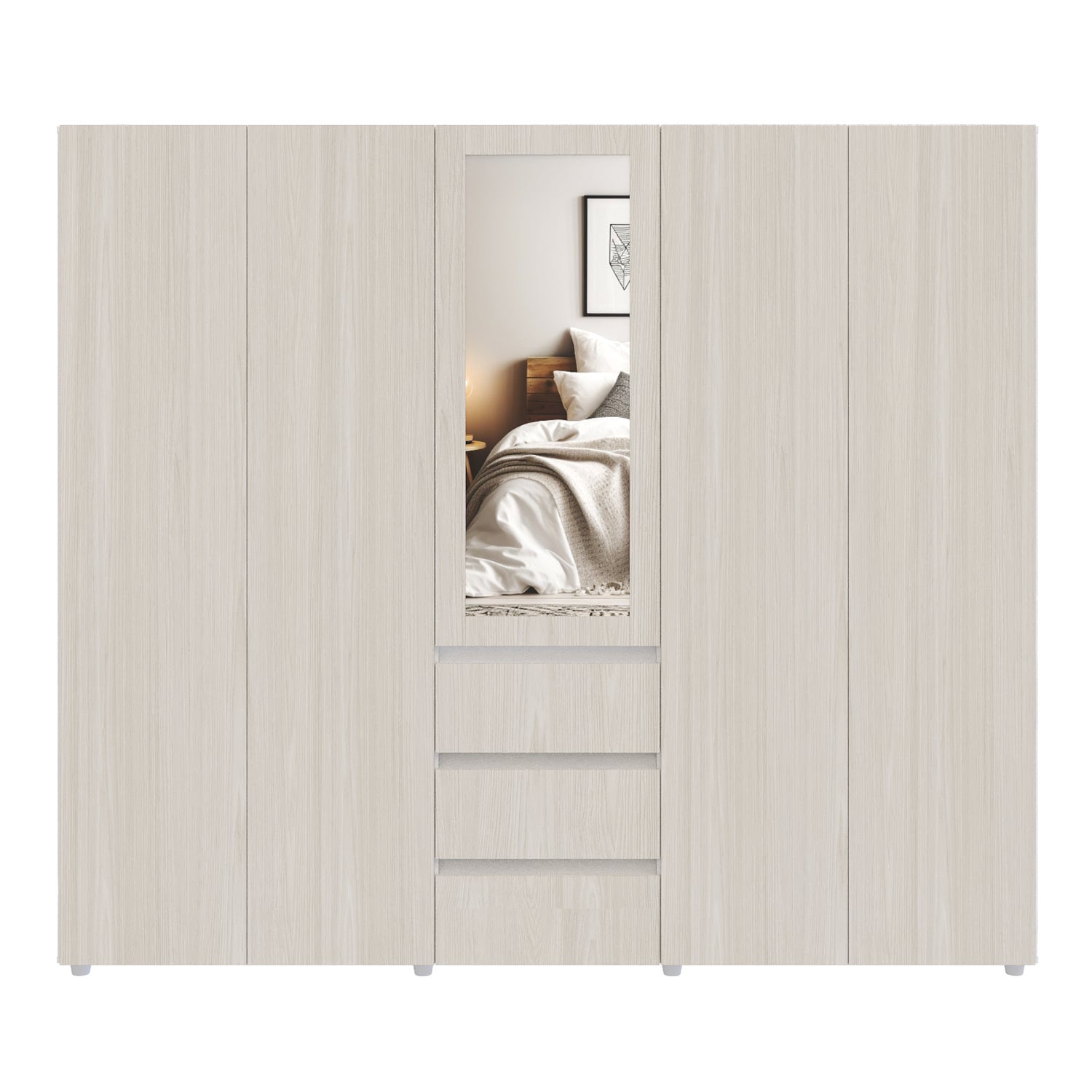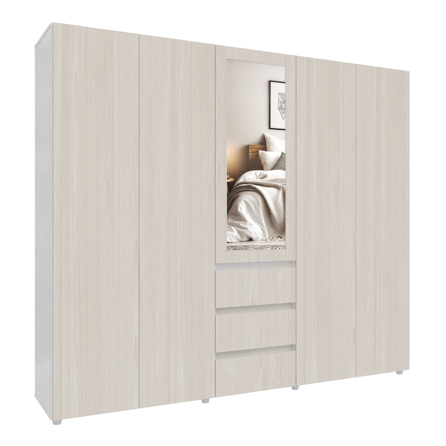 Closet Java Niebla y Blanco 230x200cm con Tres Cajones con Cinco Compartimientos y con Espejo