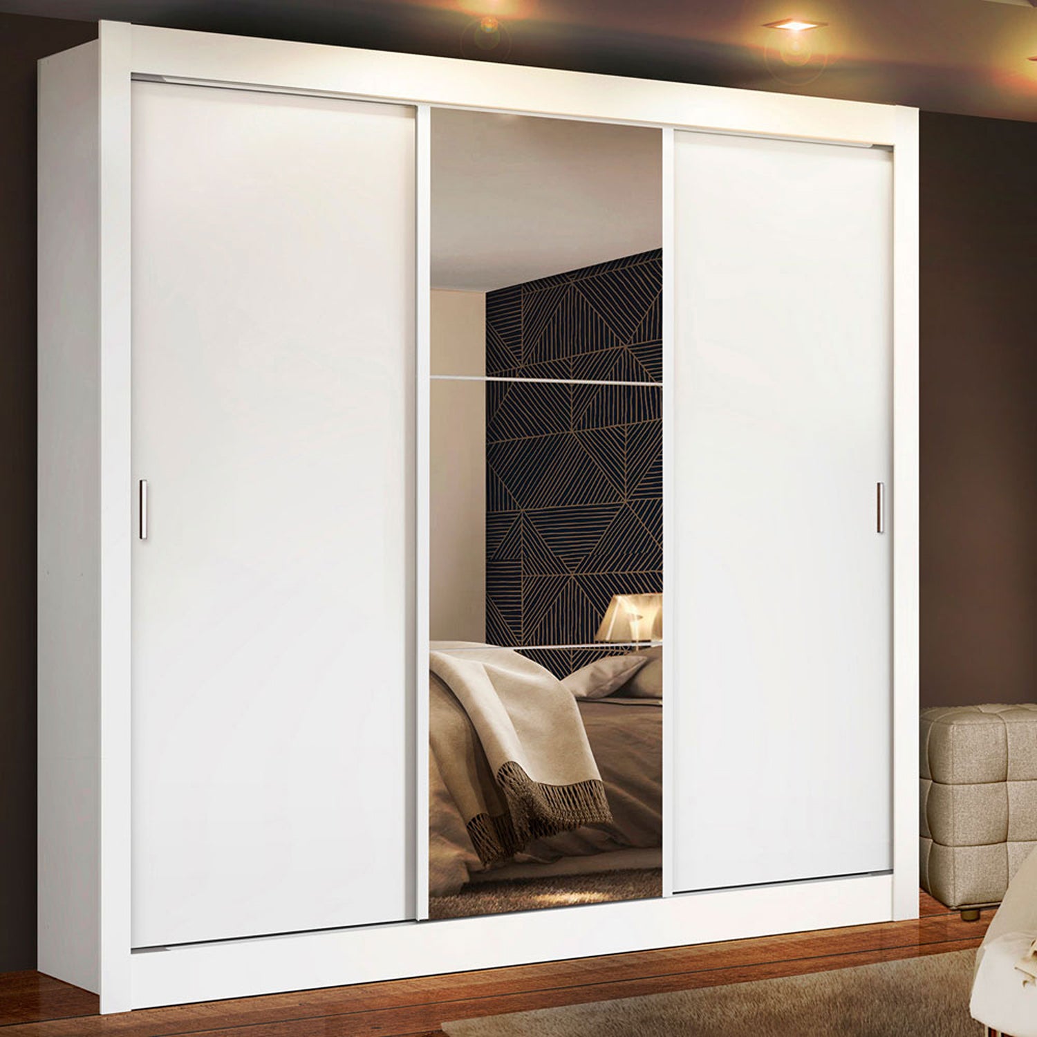Closet Mônaco Blanco 170x205cm con Cuatro Entrepaños Tres Puertas y Con Espejo