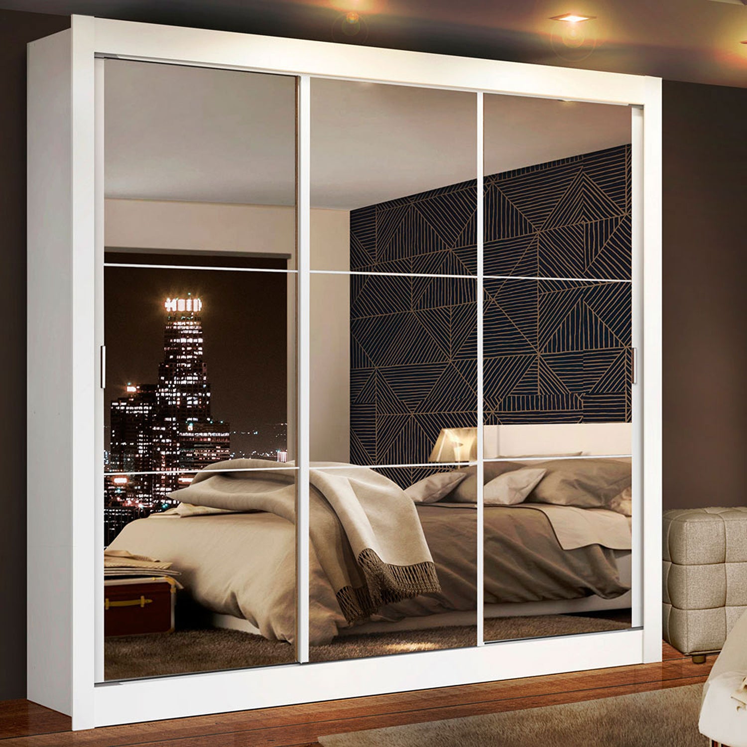 Closet Mônaco Blanco 170x205cm con Cuatro Entrepaños Tres Puertas y Con Espejo