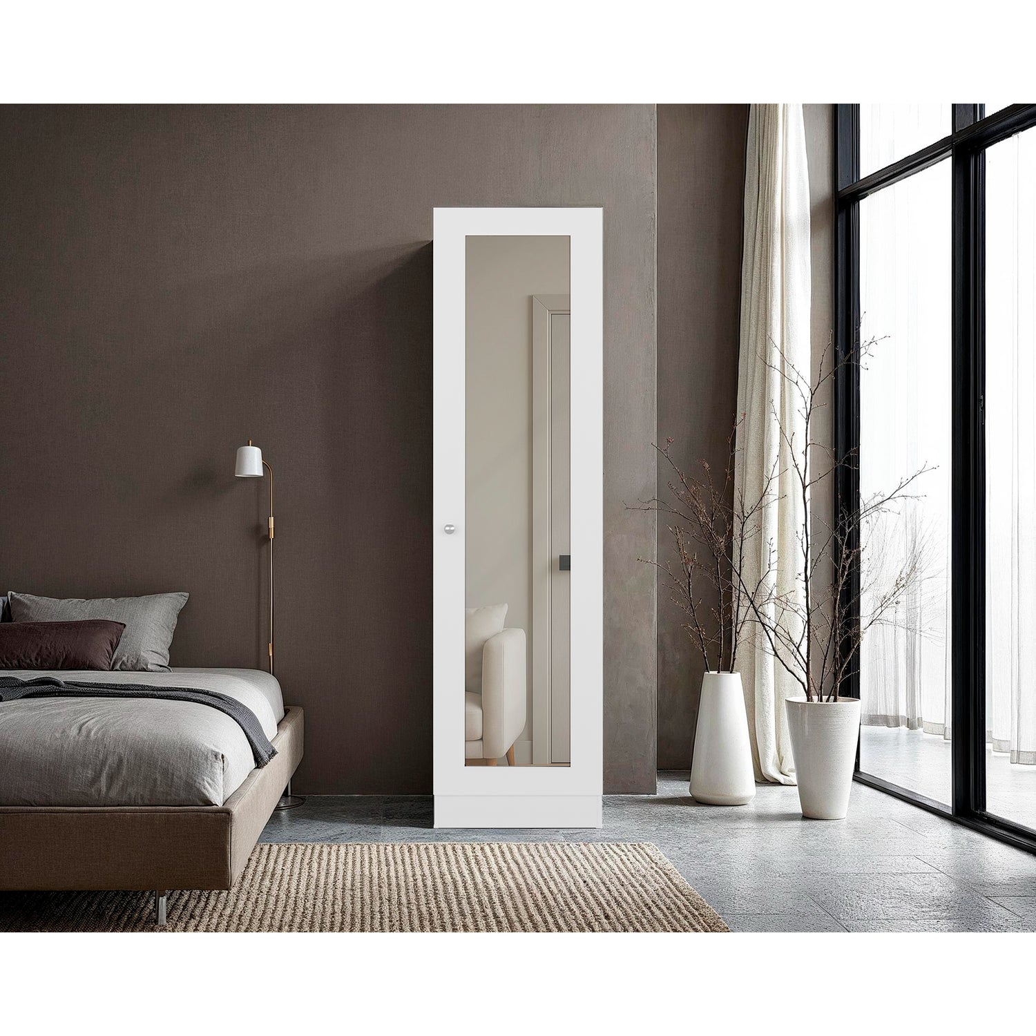 Closet Praga Blanco 49.1x180.8cm con una Puerta sin Cajones y con Espejo