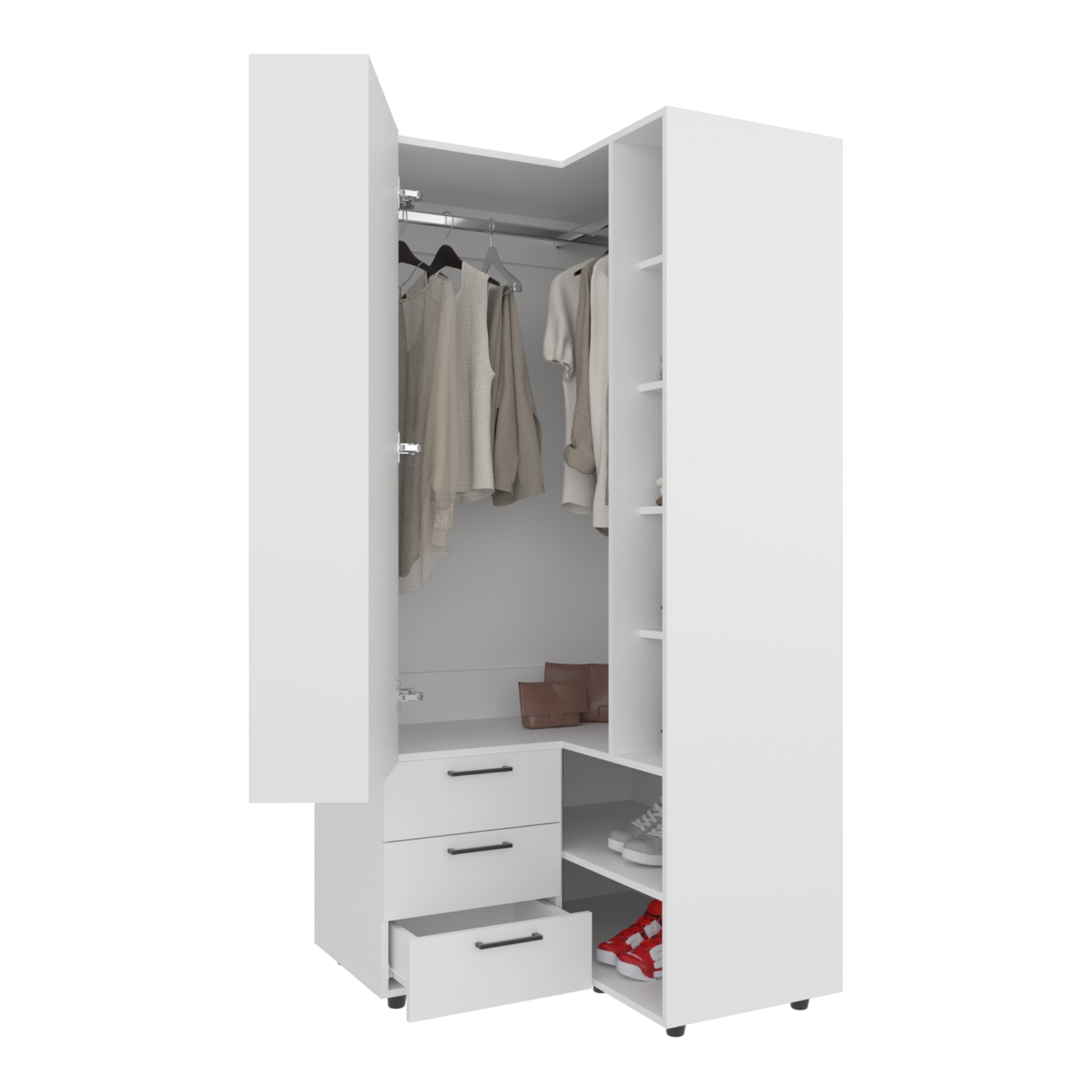 Closet Toulouse Blanco 85x180cm Con Tres Cajones y Diez Compartimientos