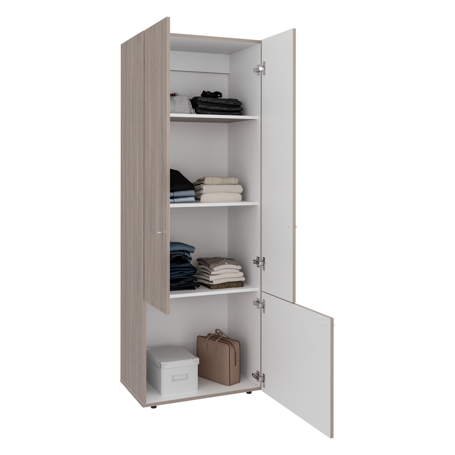 Closet Tuhogar Bardolino y Blanco 60x170cm con Cuatro Compartimientos y con Tres Puertas