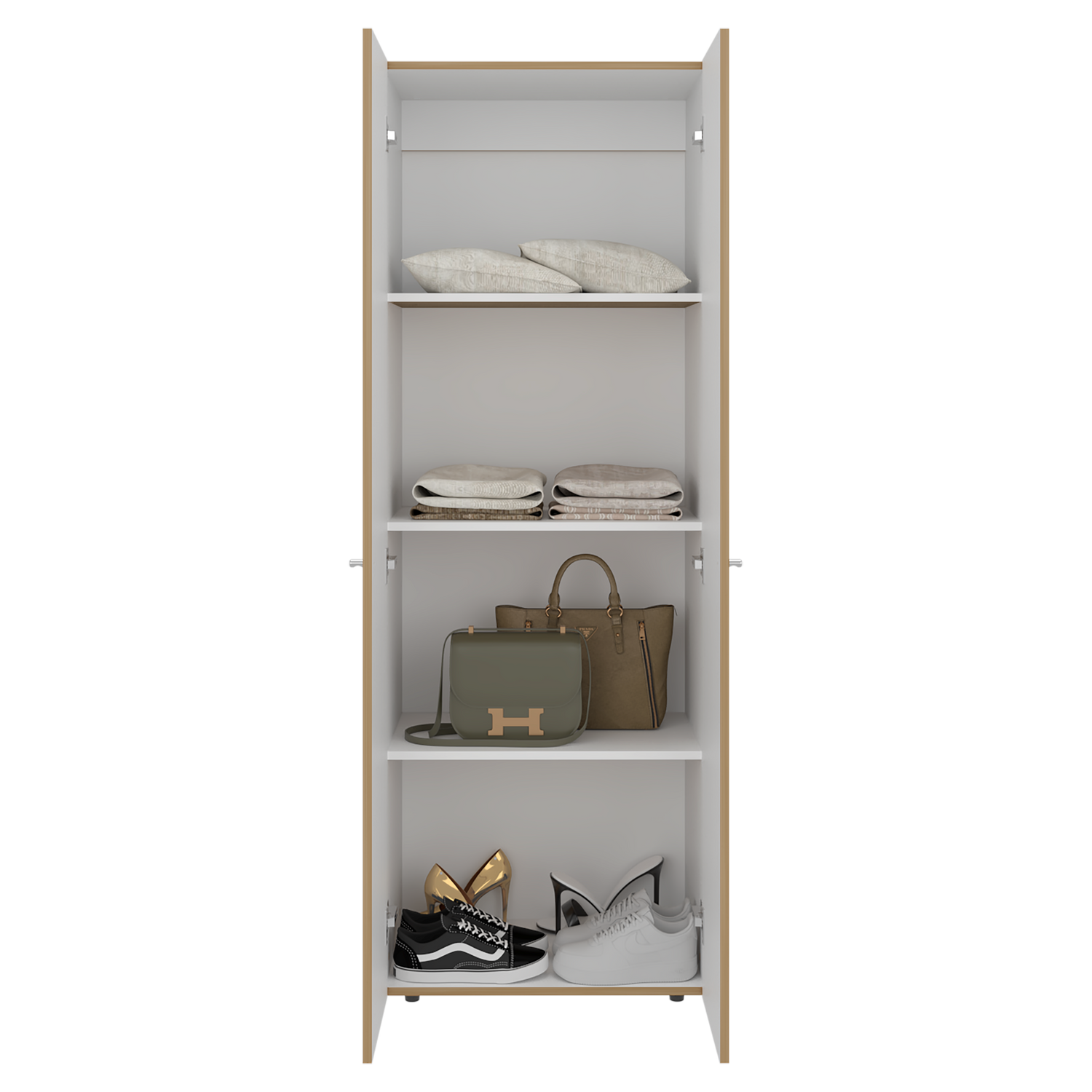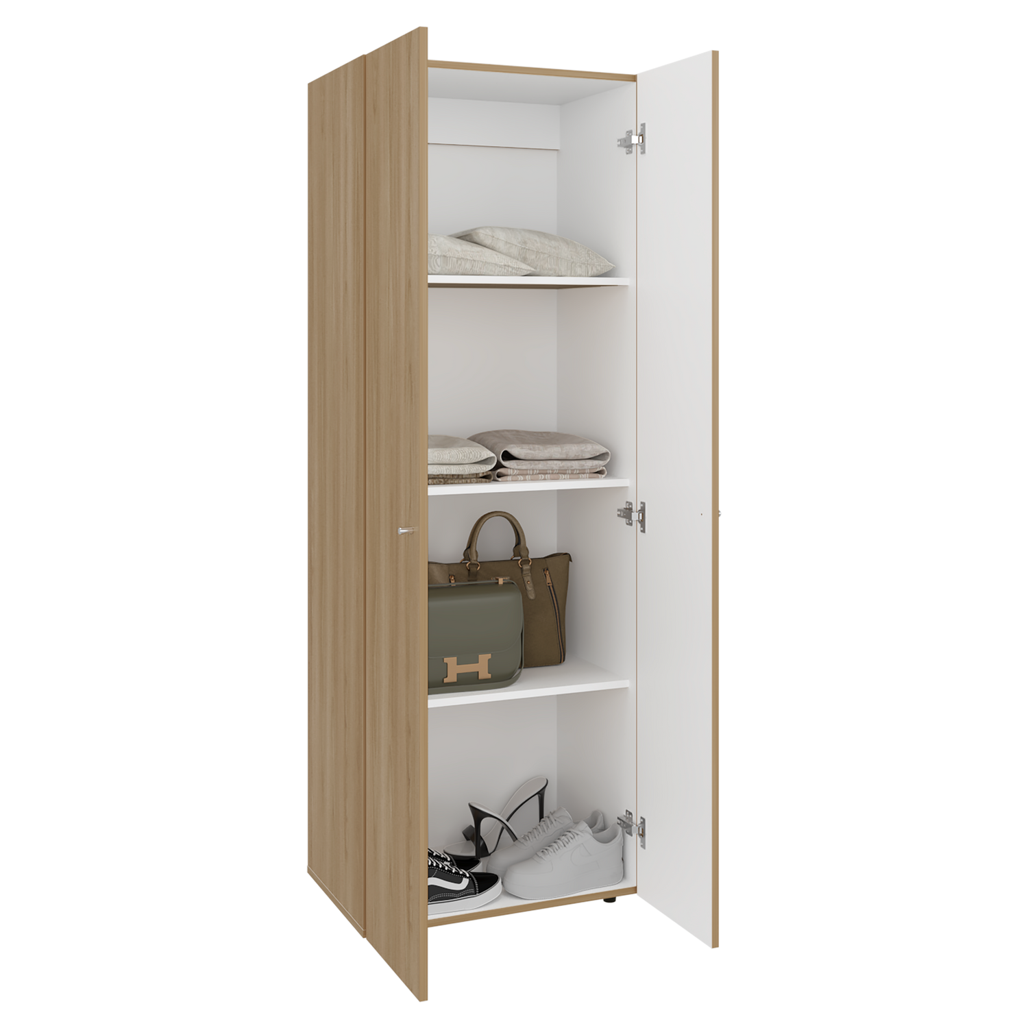 Closet Tuhogar Fresno y Blanco 60x170cm con Cuatro Compartimientos y con Dos Puertas