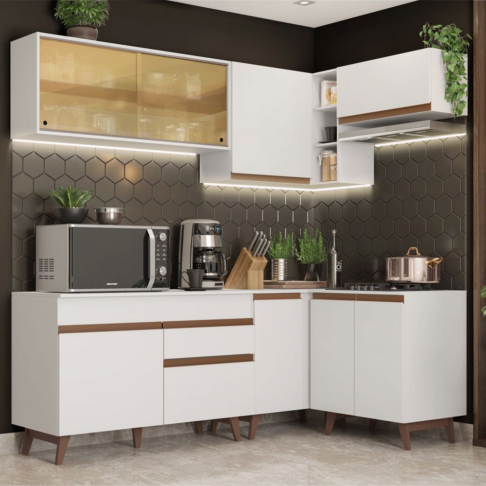 Cocina Integral Esquinero Modular Reims Blanco 332x210cm con Mesón de Madera Aglomerada Mdp sin Estufa con Un Cajón y con Dieciséis Entrepaños