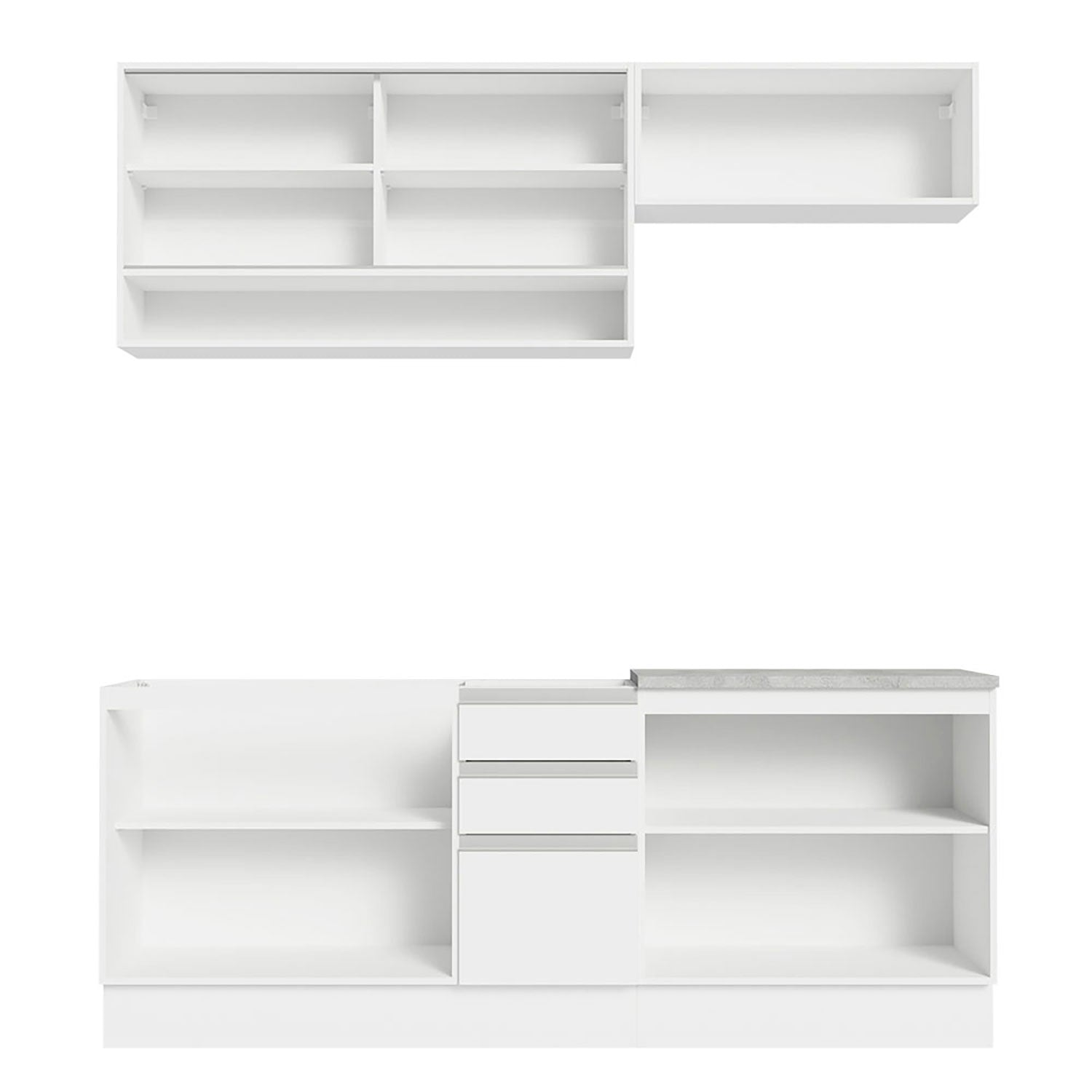 Cocina Integral Glamy Blanco 200x225cm con Mesón de Madera Aglomerada MDP y sin Pozuelo