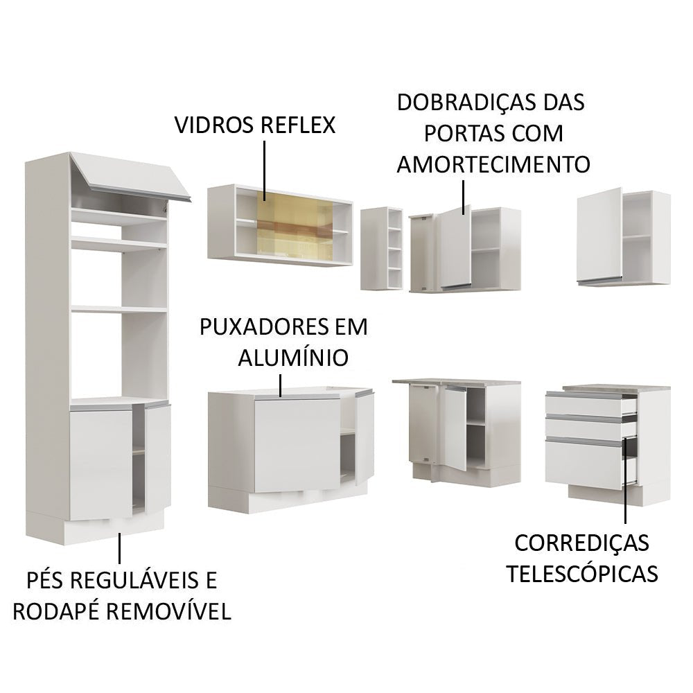 Cocina Integral Glamy Blanco 399x225cm sin Mesón y sin Pozuelo