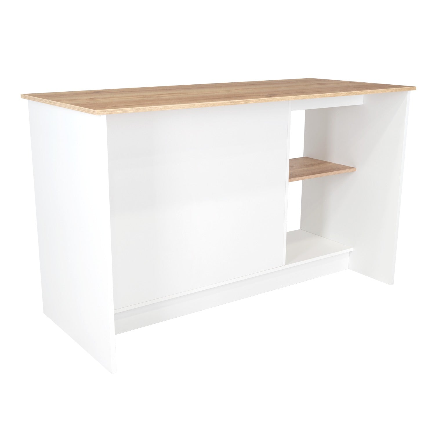 Isla de Cocina Jupiter Blanco y Duna 150x90cm con Tres Entrepaños y con Seis Comportamientos