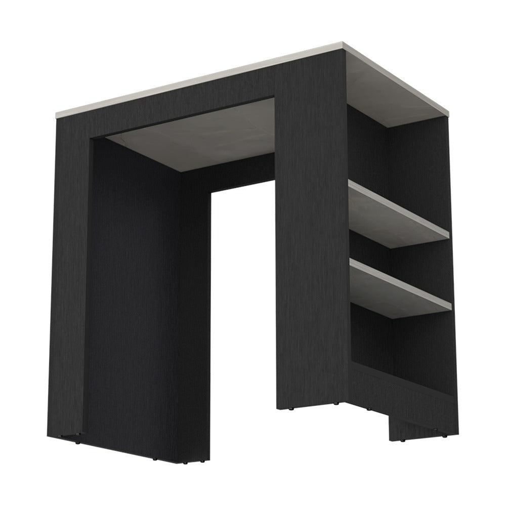 Isla de Cocina Wengue 92x91cm con Dos Entrepaños y Tres Compartimientos