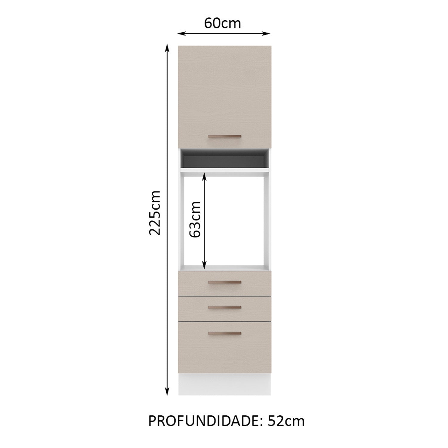 Mueble Auxiliar de Cocina Agata Blanco y Crema 60x225cm Con Patas y Mesón de Madera
