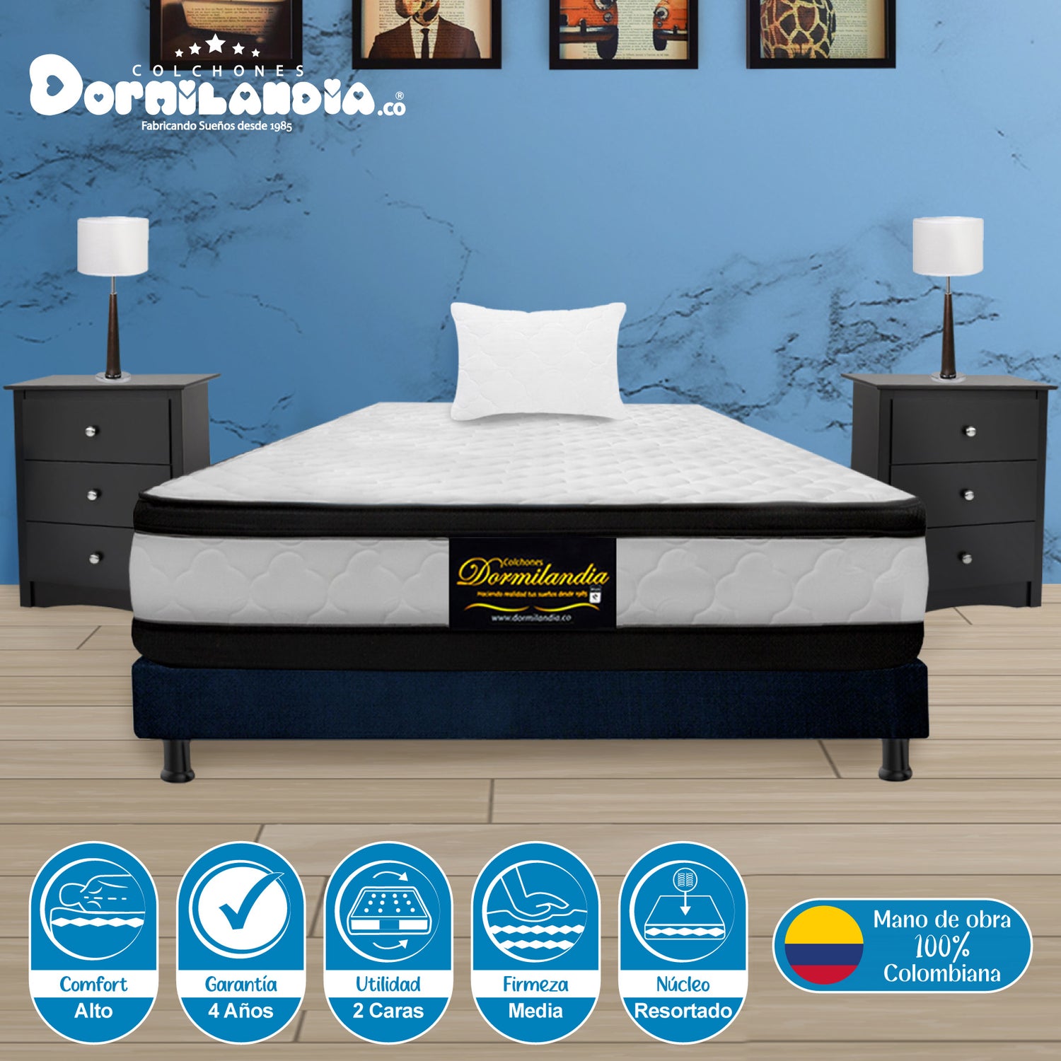 Combo Base Cama y Colchón Atenas Blanco y Azul Sencillo 100 X 190 Cm Firmeza Medio Doble Faz
