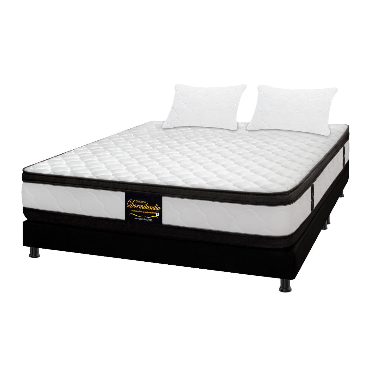 Combo Base Cama y Colchón Malta Blanco y Negro Queen 160 X 190 Cm Firmeza Firme Doble Faz