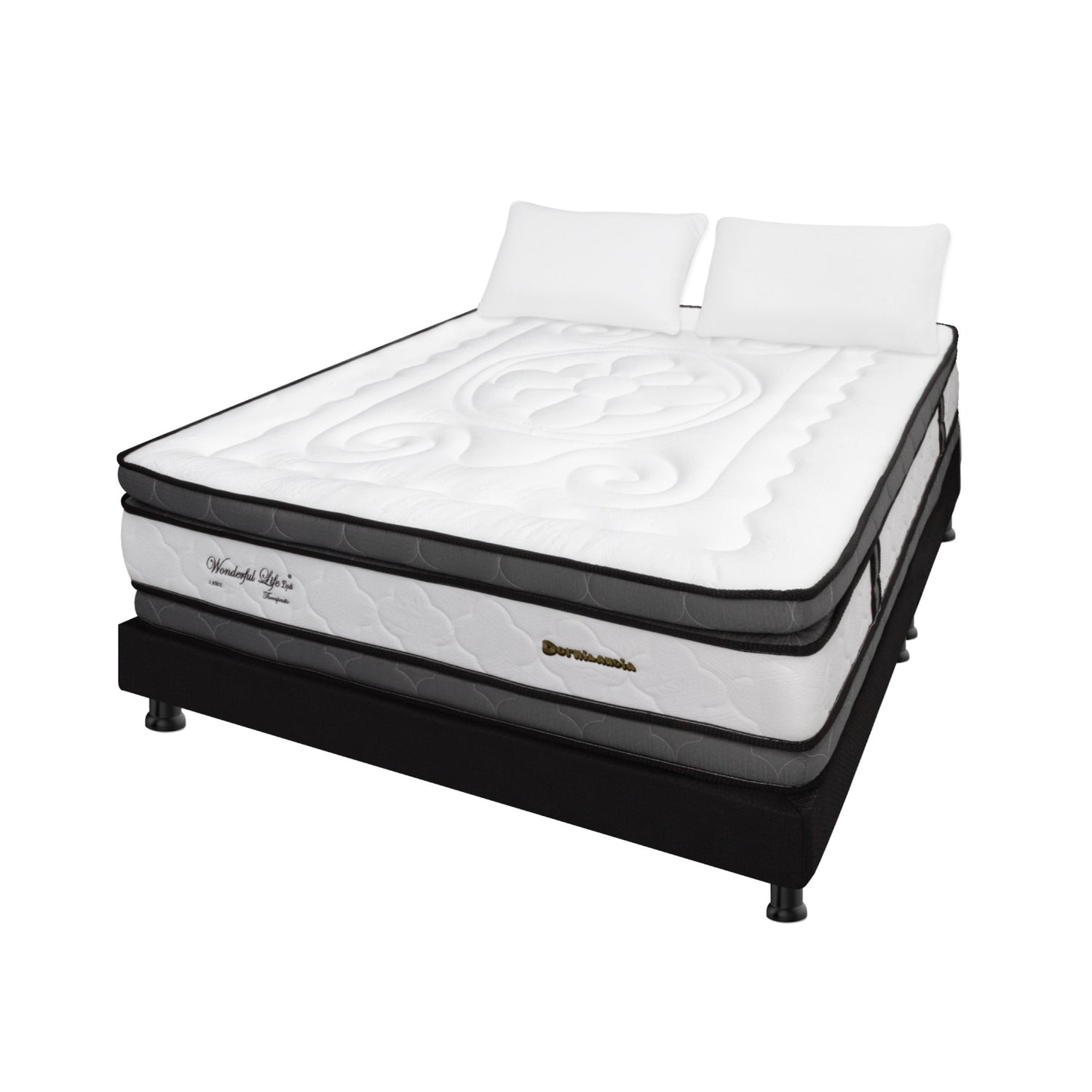 Combo Base Cama y Colchón Wonderful Blanco y Negro Queen 160 X 190 Cm Firmeza Medio Doble Faz