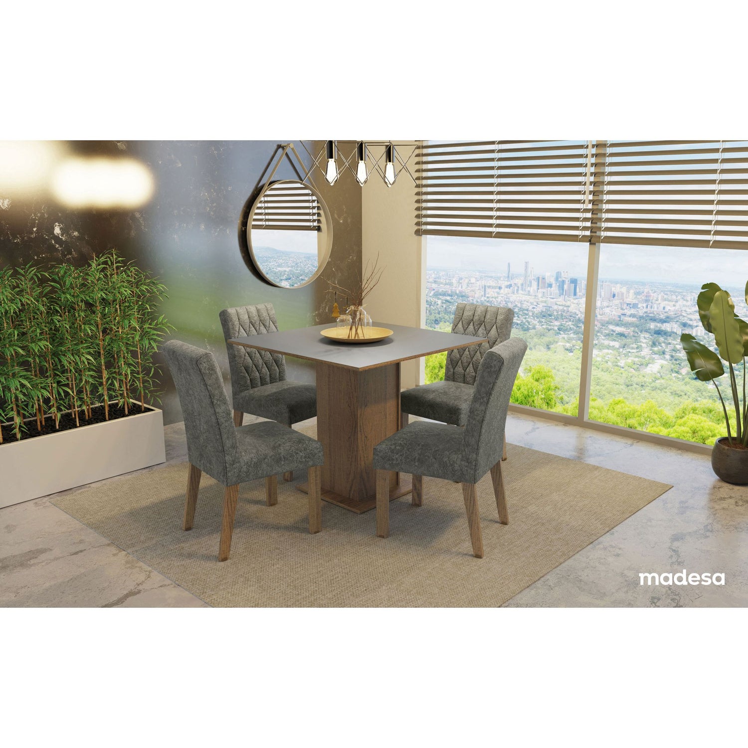 Combo Comedor y Sillas Livia Marron con Gris y Plata 90x78cm Cuadrado de Cuatro Puestos con Cuatro Sillas