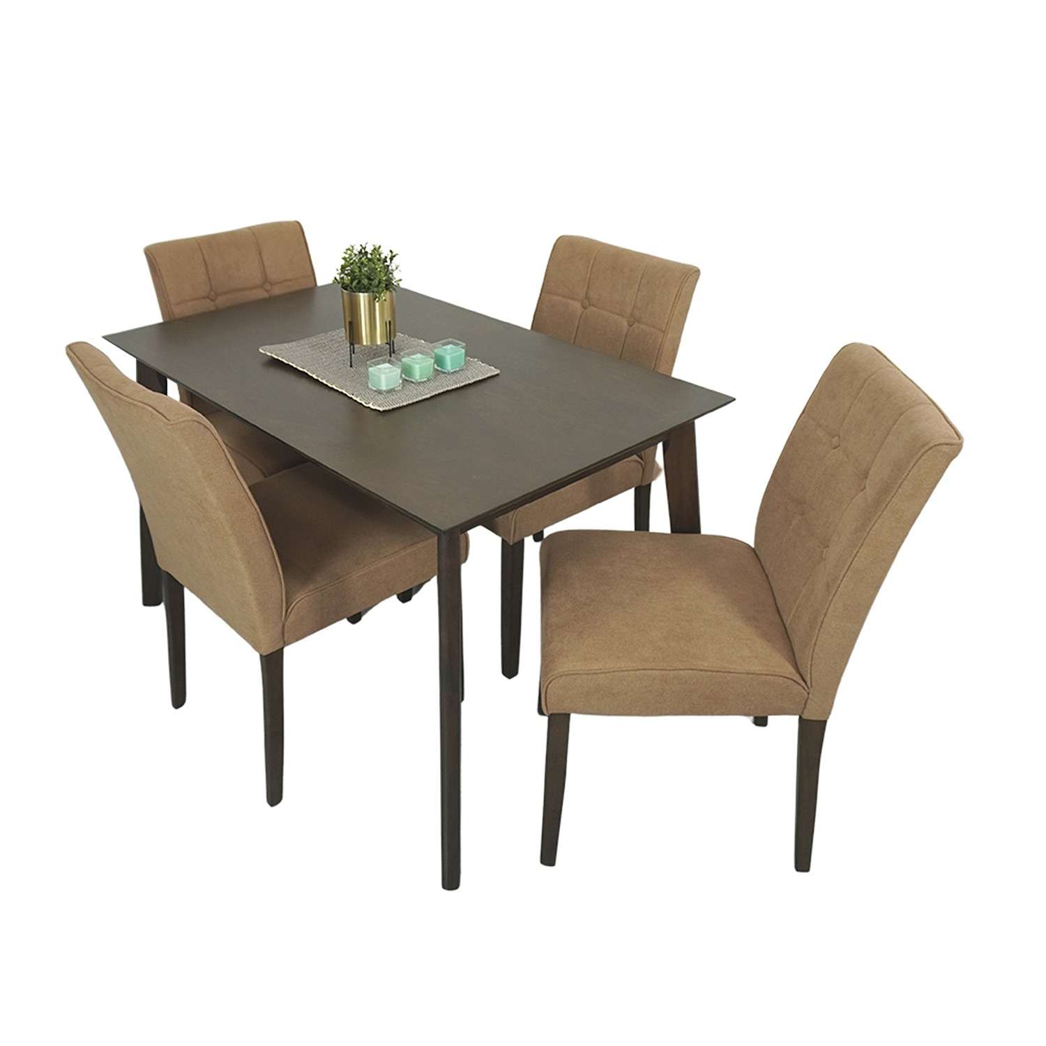 Comedor Enna Camel 120x74cm Rectangular de Cuatro Puestos y con Cuatro Sillas