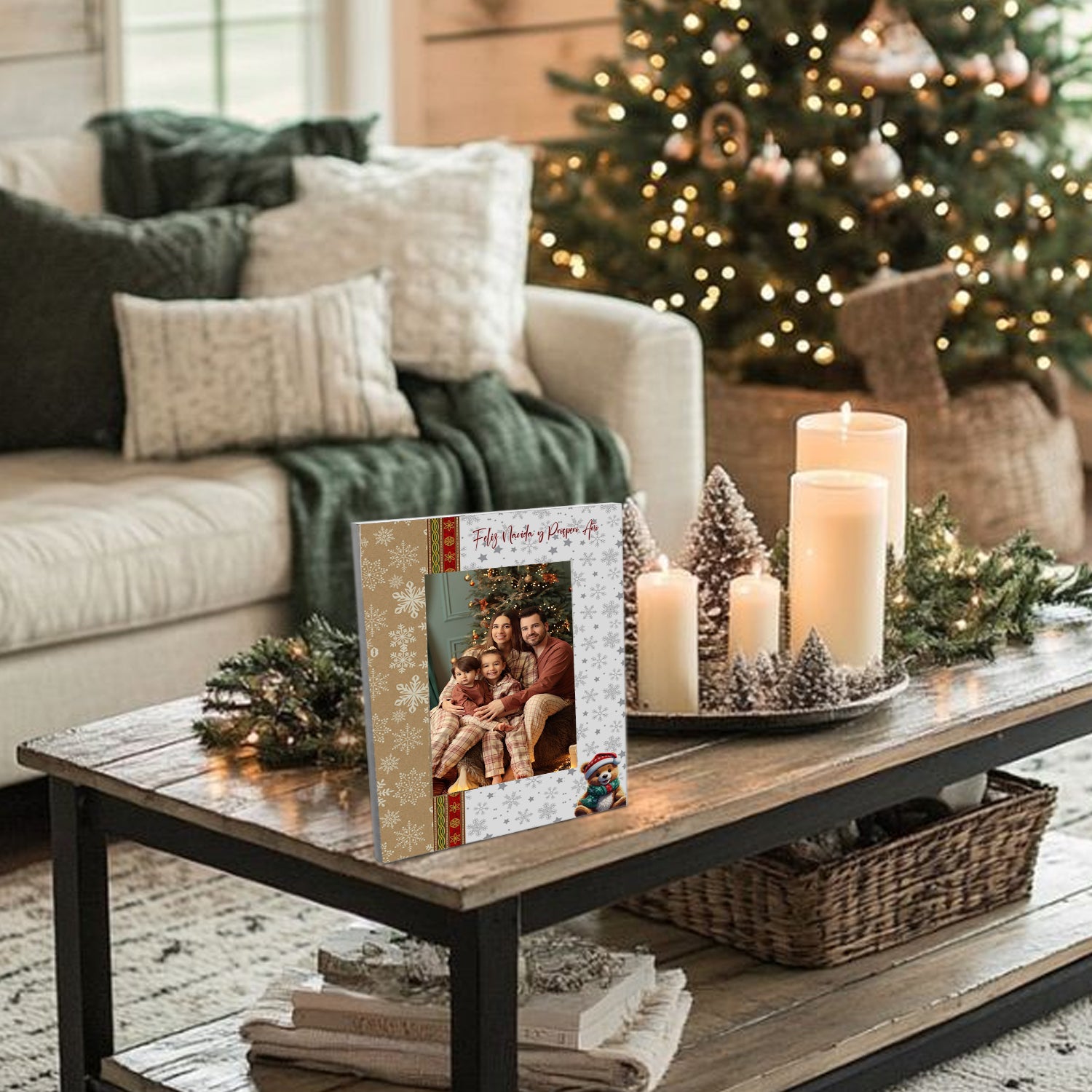 Portarretrato Oso Blanco y Rosa 18x23cm sin Marco y con Vidrio Protector