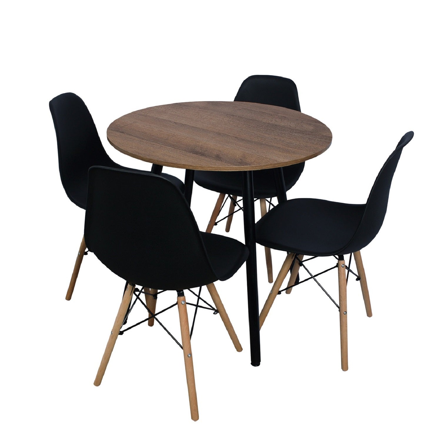 Combo Comedor y Cuatro Sillas Circular Amaretto y Negro 80x75cm para Cuatro Puestos
