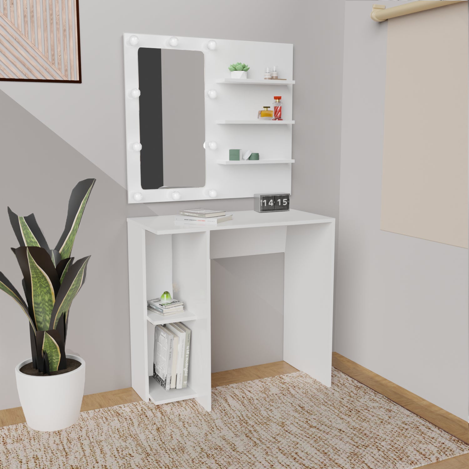 Combo Panel Tocador con Escritorio Hollywood Blanco 80x70cm de Un Puesto con Iluminación LED