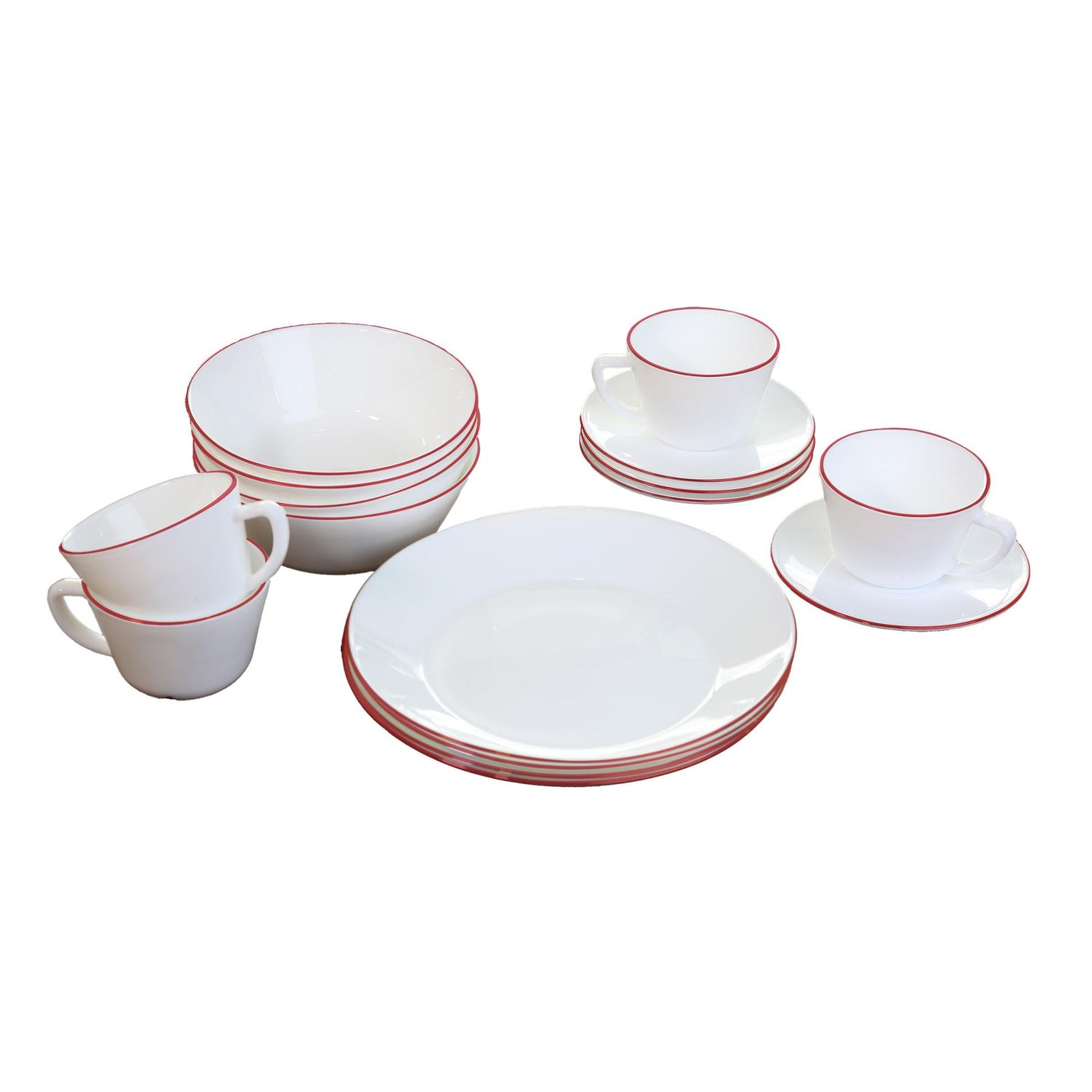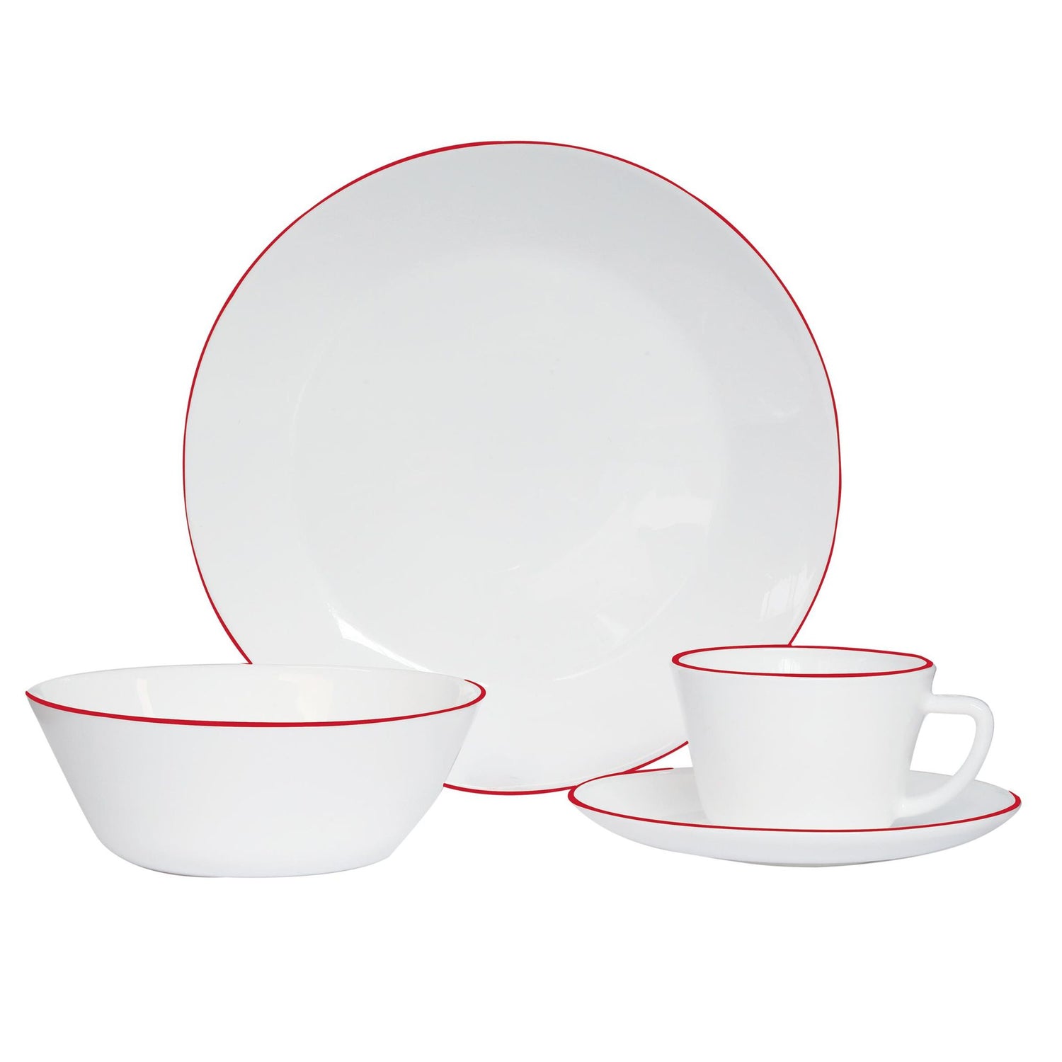 Juego de Vajillas de 16 Piezas Vitrocerámica Blanco y rojo 24x2.5cm para Cuatro Puestos con Acabado Brillante