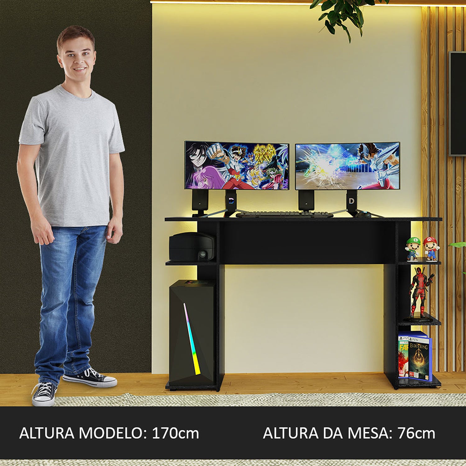 Escritorio Gamer Negro 120x76cm sin Cajones con Organizador de Libros